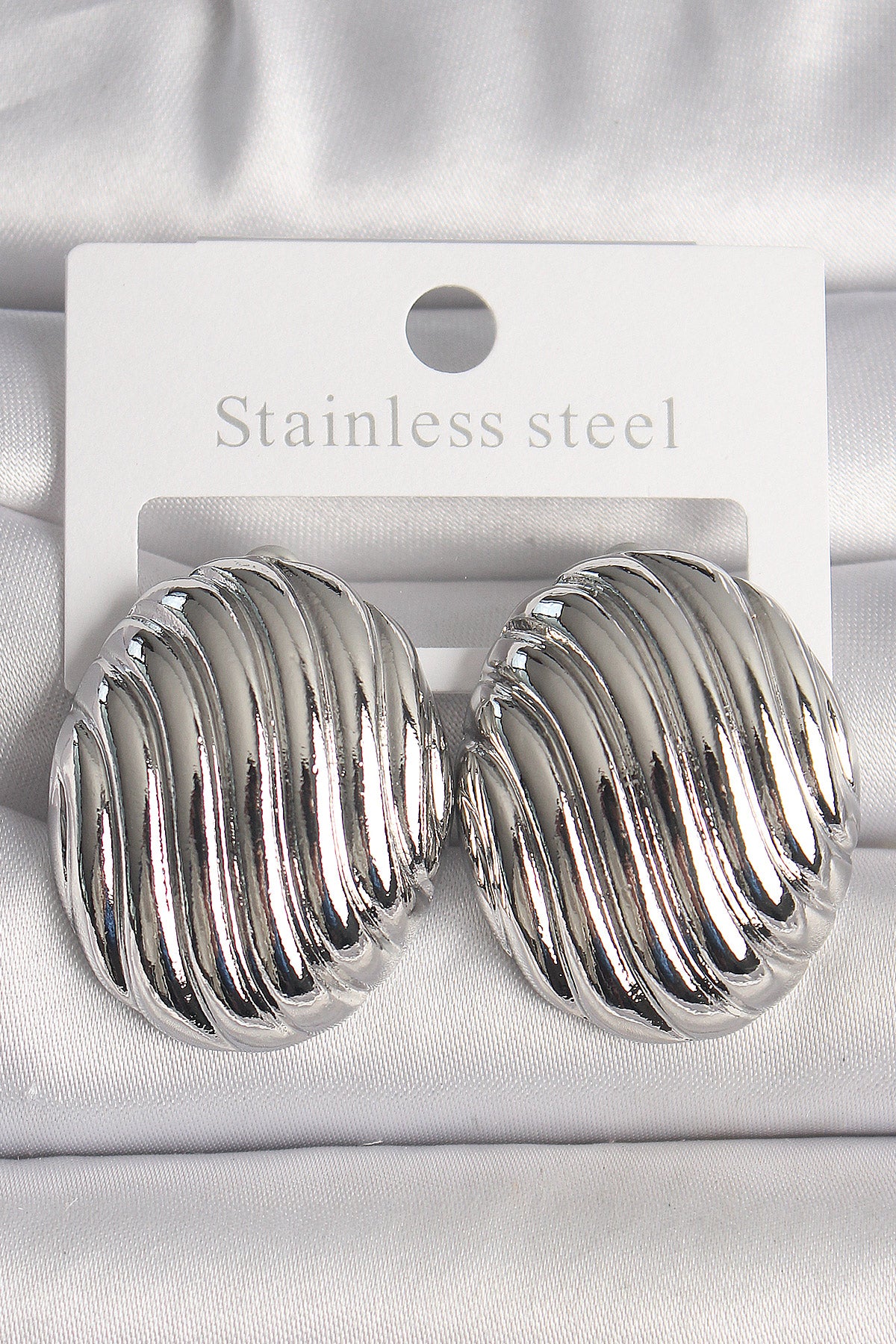 BKP10150 - Pirinç Gümüş Renk İşlemeli Oval Model Kadın Küpe
