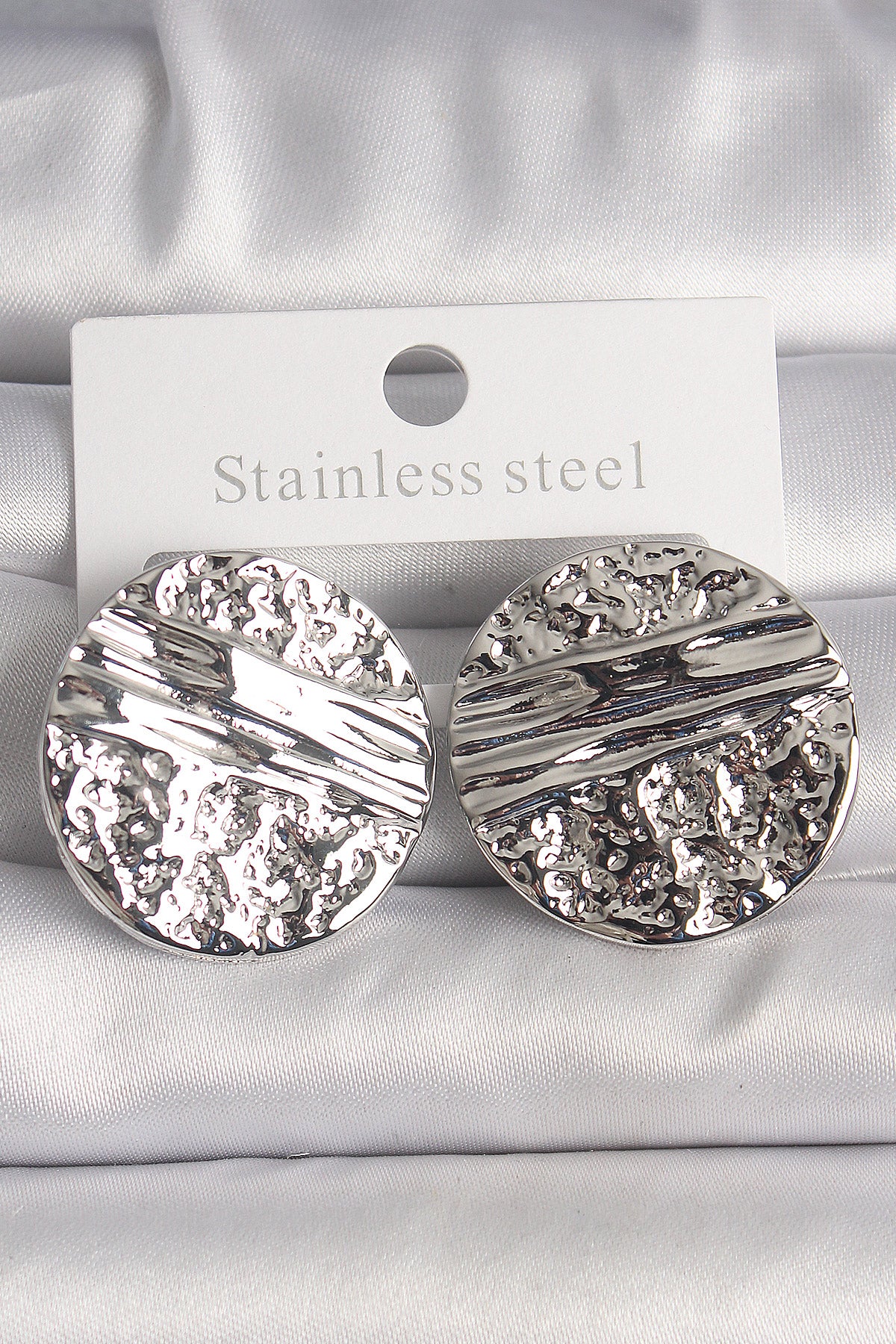 BKP10152 - Pirinç Gümüş Renk İşlemeli Daire Plaka Model Kadın Küpe