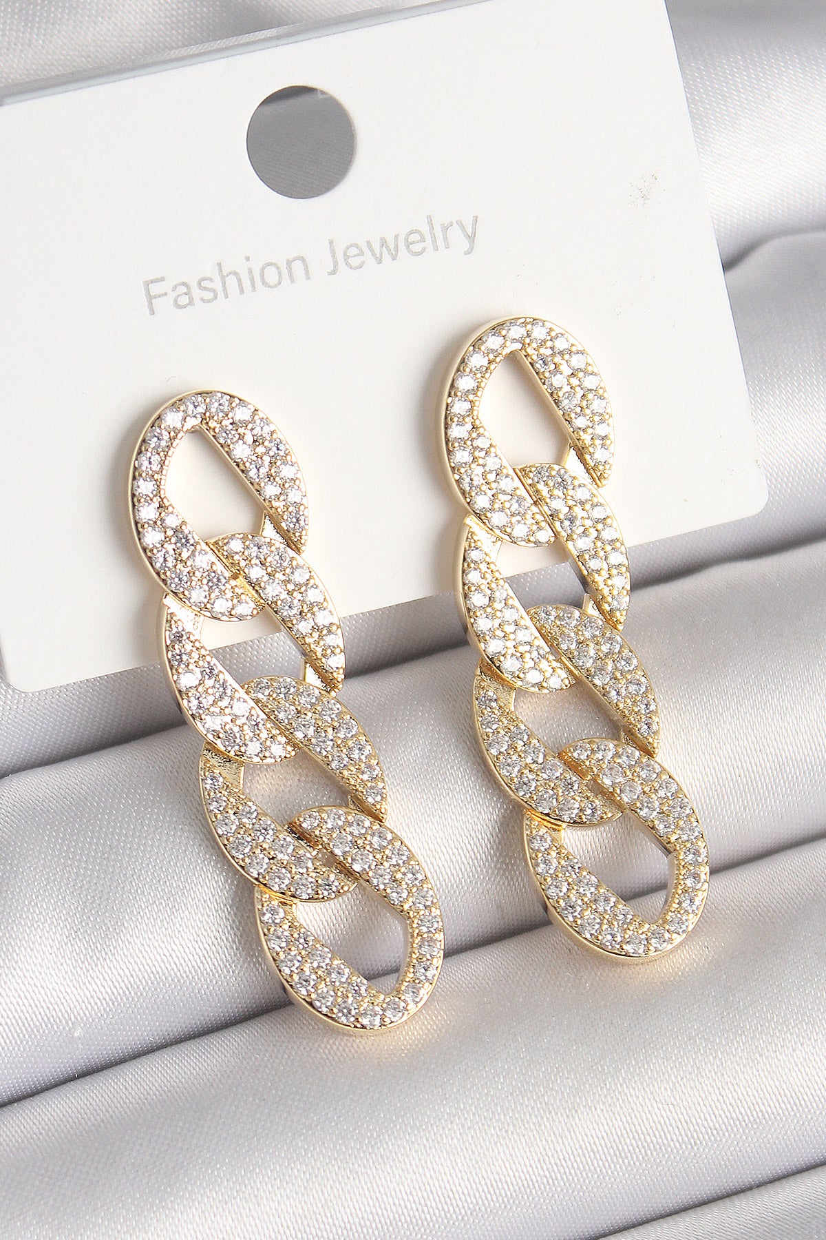 BKP10202 - Pirinç Gold Renk Zirkon Taşlı Zincir Model Kadın Küpe