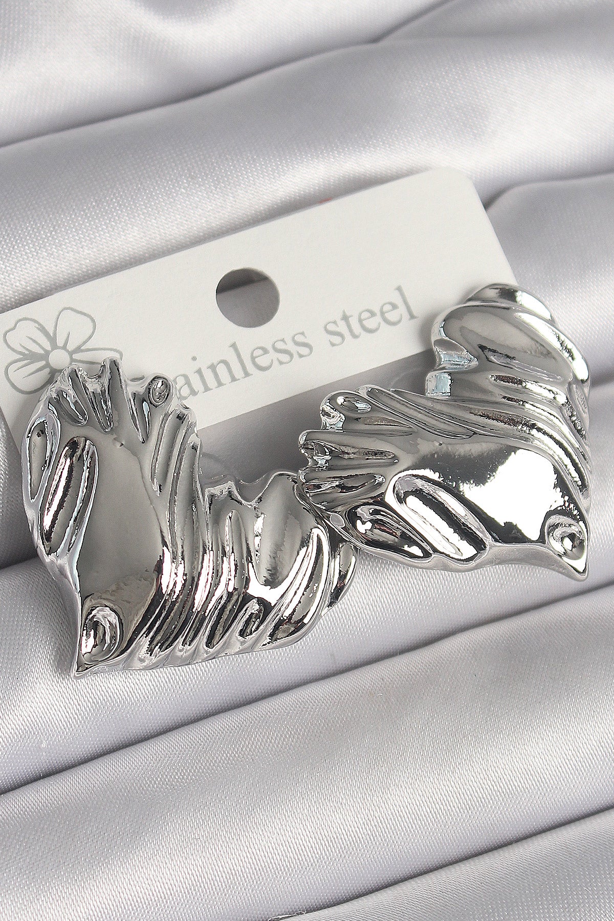 BKP10224 - Pirinç Gümüş Renk İşlemeli Kalp Model Kadın Küpe