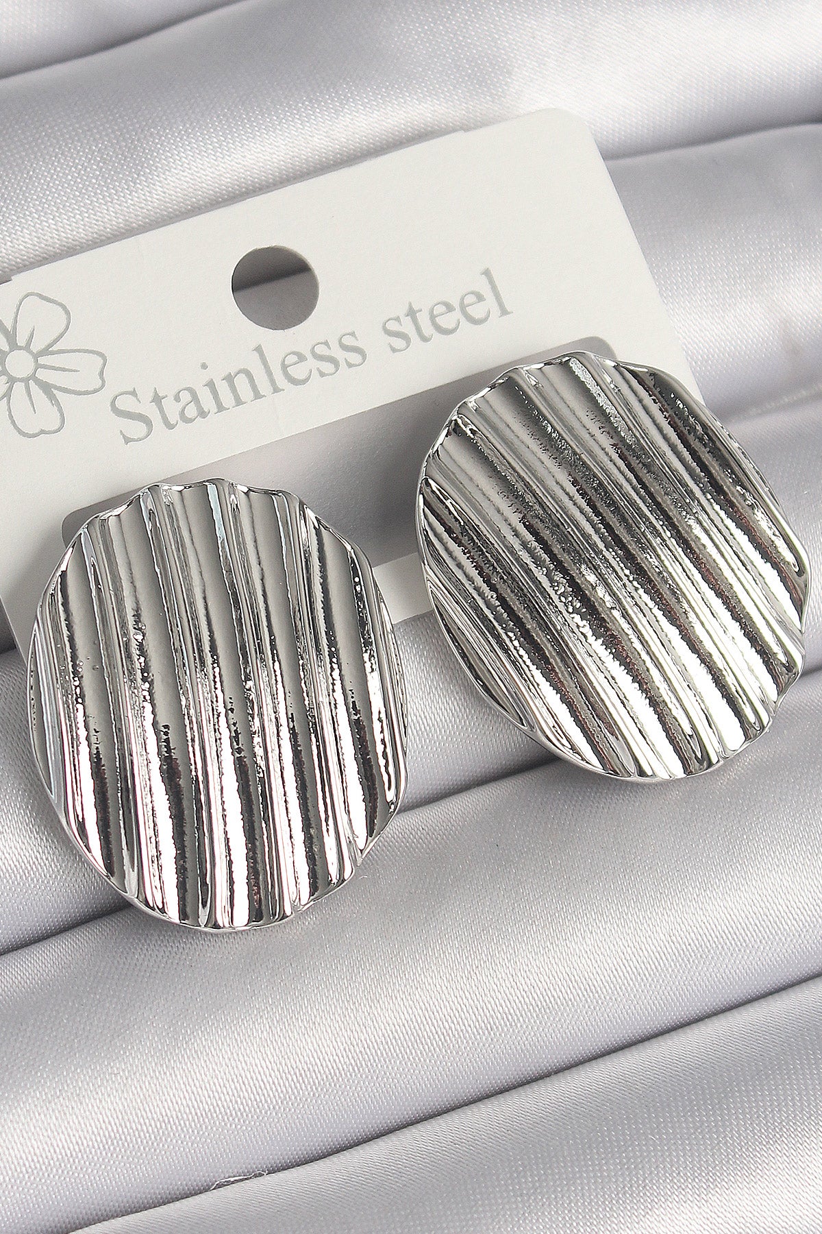 - Ürün Adı: Pirinç Gümüş Renk Sallantı İşlemeli Daire Plaka Model Kadın Küpe
