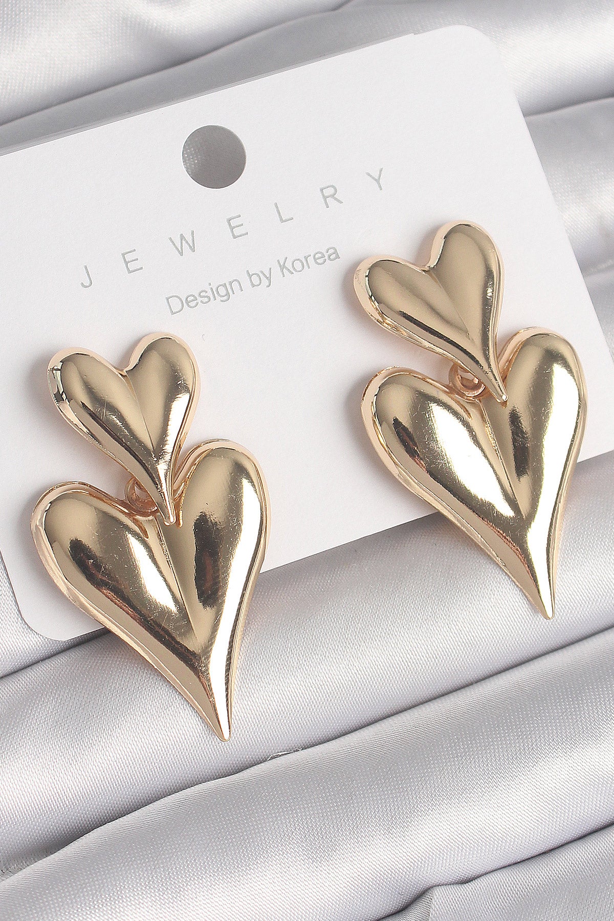 - Ürün Adı: Pirinç Gold Renk Sallantı Kalp Model Kadın Küpe
