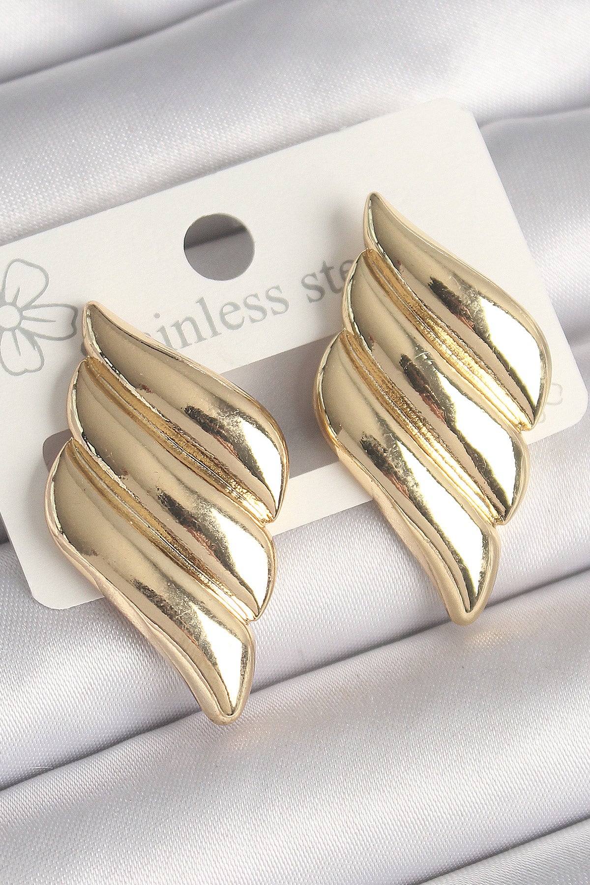 - Ürün Adı: Pirinç Gold Renk 3 Sıralı Dalgalı Model Kadın Küpe
