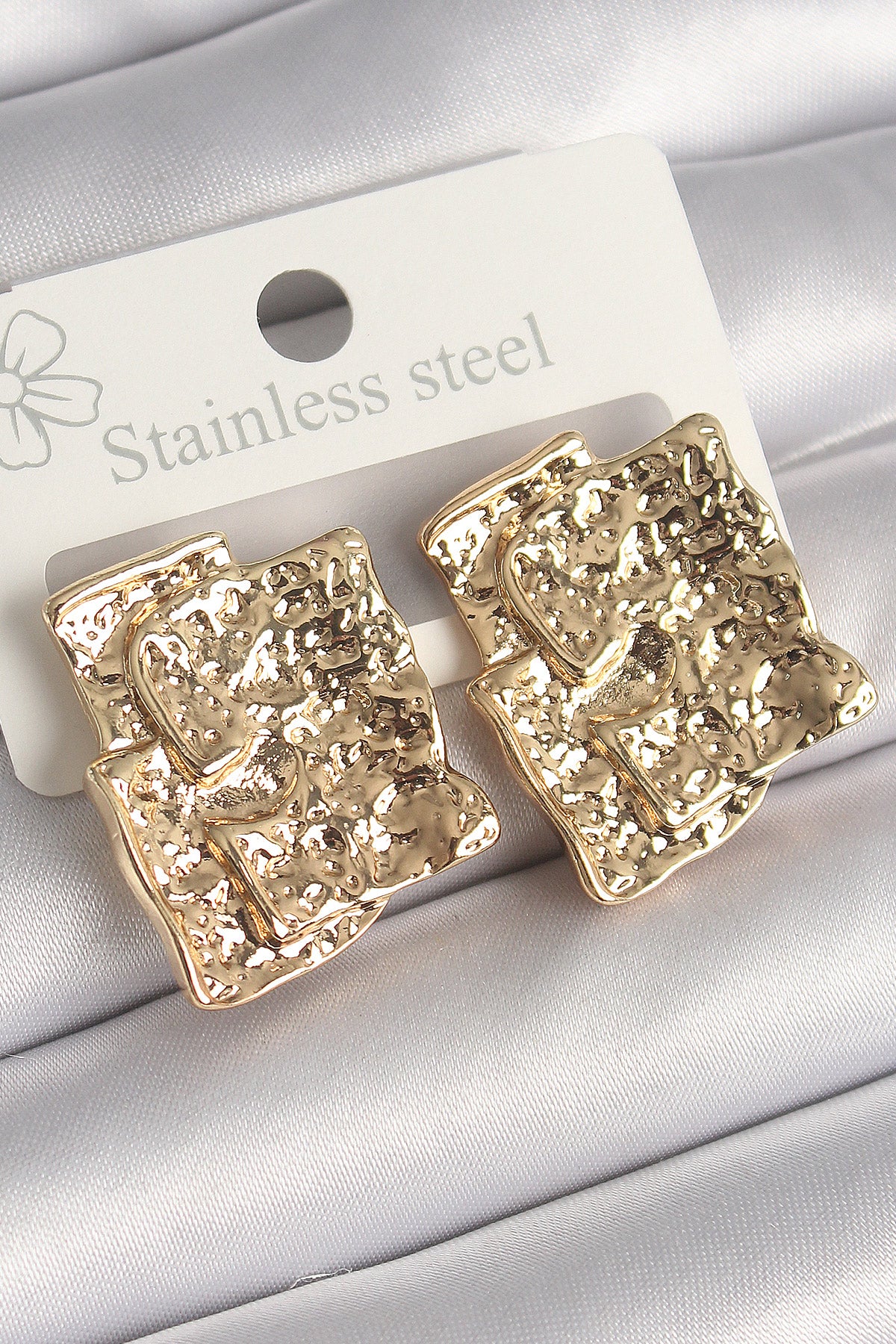 - Ürün Adı: Pirinç Gümüş Renk İşlemeli Kare Plaka Model Kadın Küpe