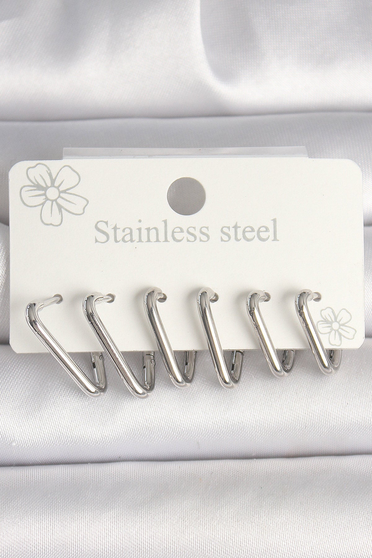 - Ürün Adı: 316L Çelik Gümüş Renk Üçgen Model Kadın Küpe Seti
