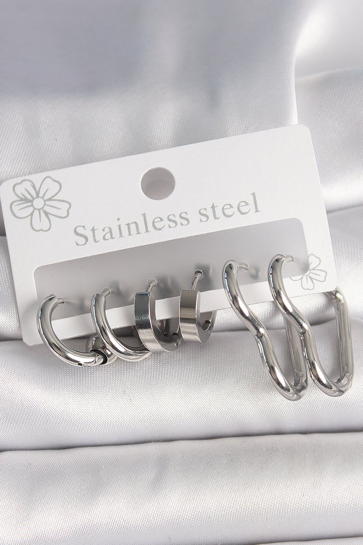 - Ürün Adı: 316L Çelik Gümüş Renk Kalp Halka Model Kadın Küpe Seti