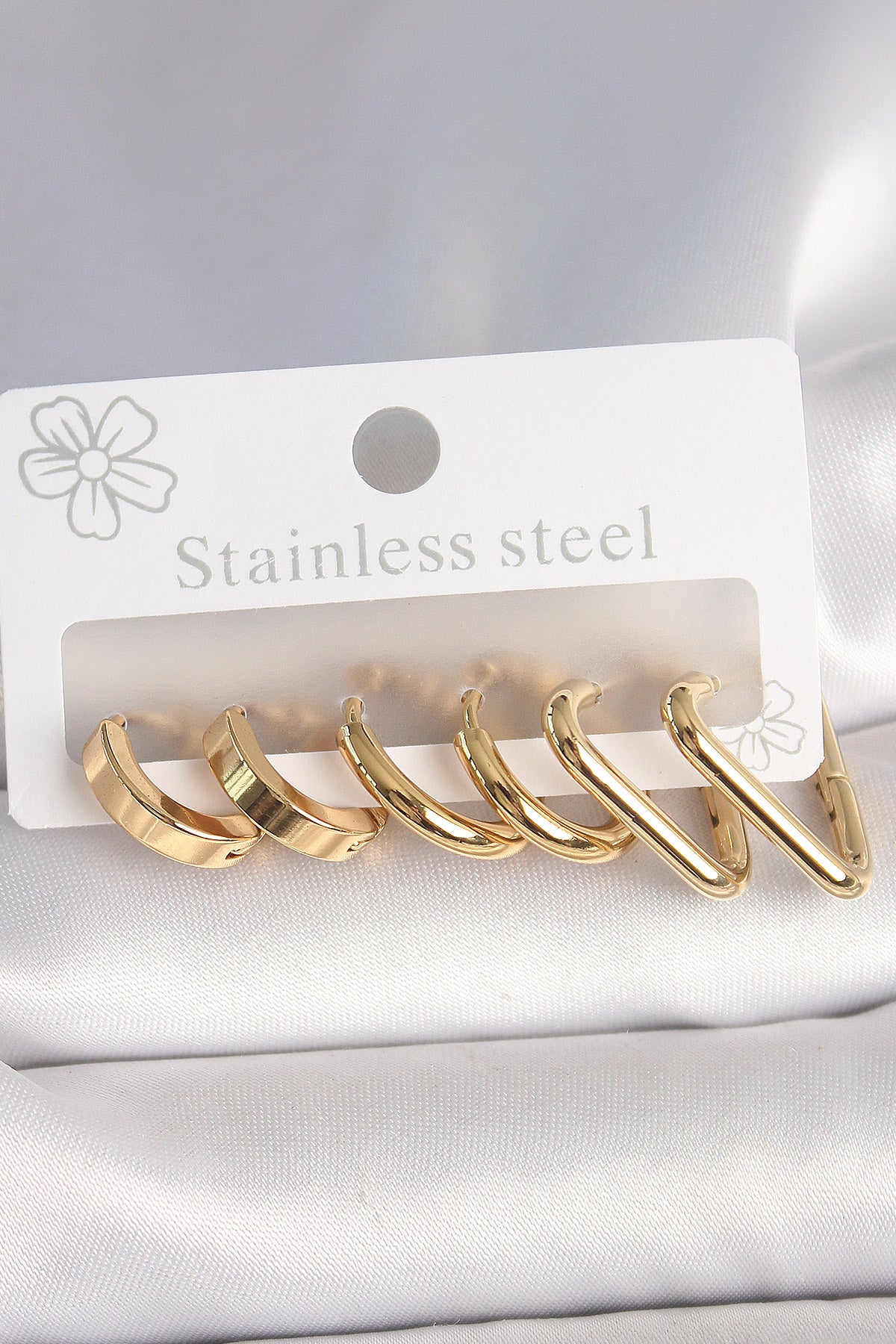 - Ürün Adı: 316L Çelik Gold Renk Üçgen Halka Model Kadın Küpe Seti