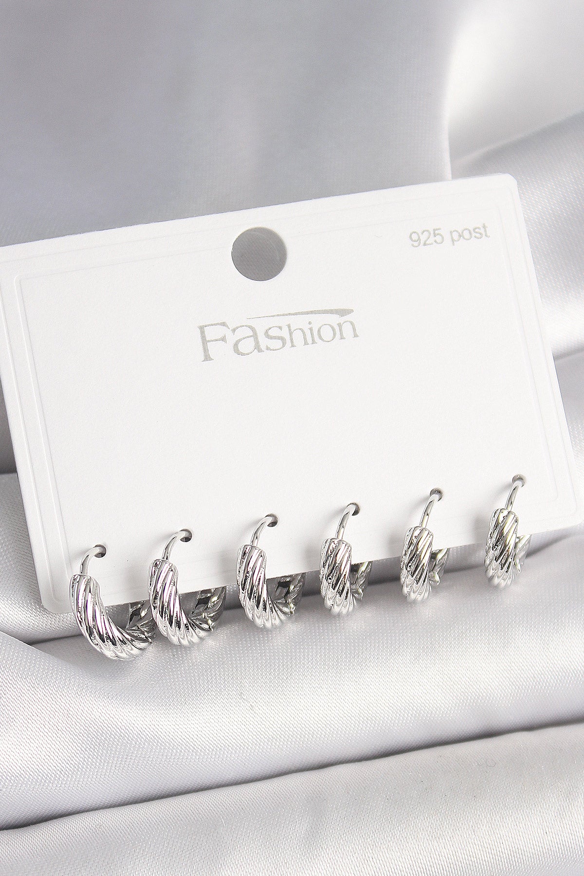 BKP10410 - 925 Ayar Gümüş Çivi Pirinç Gümüş Renk İşlemeli Halka Model Kadın Küpe Seti