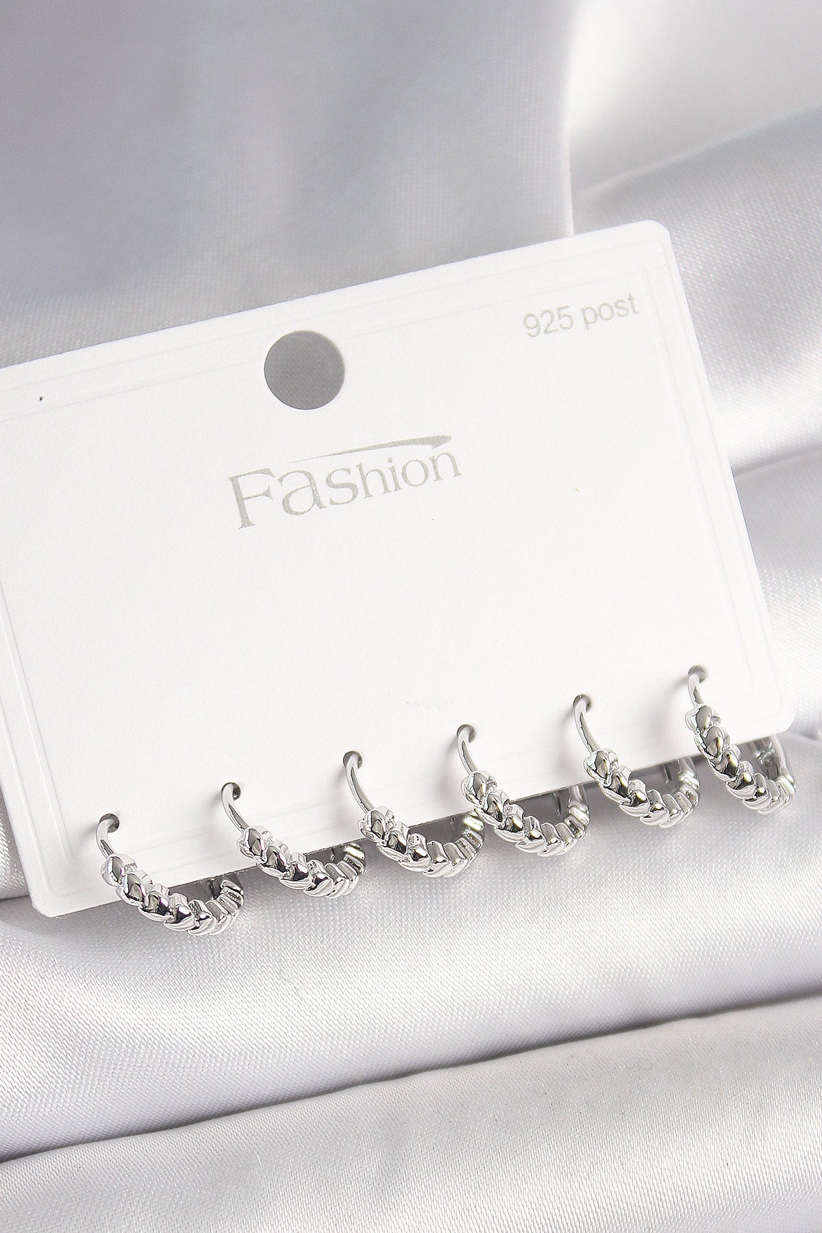 - Ürün Adı: 925 Ayar Gümüş Çivi Pirinç Gümüş Renk Kalp İşlemeli Halka Model Kadın Küpe Seti