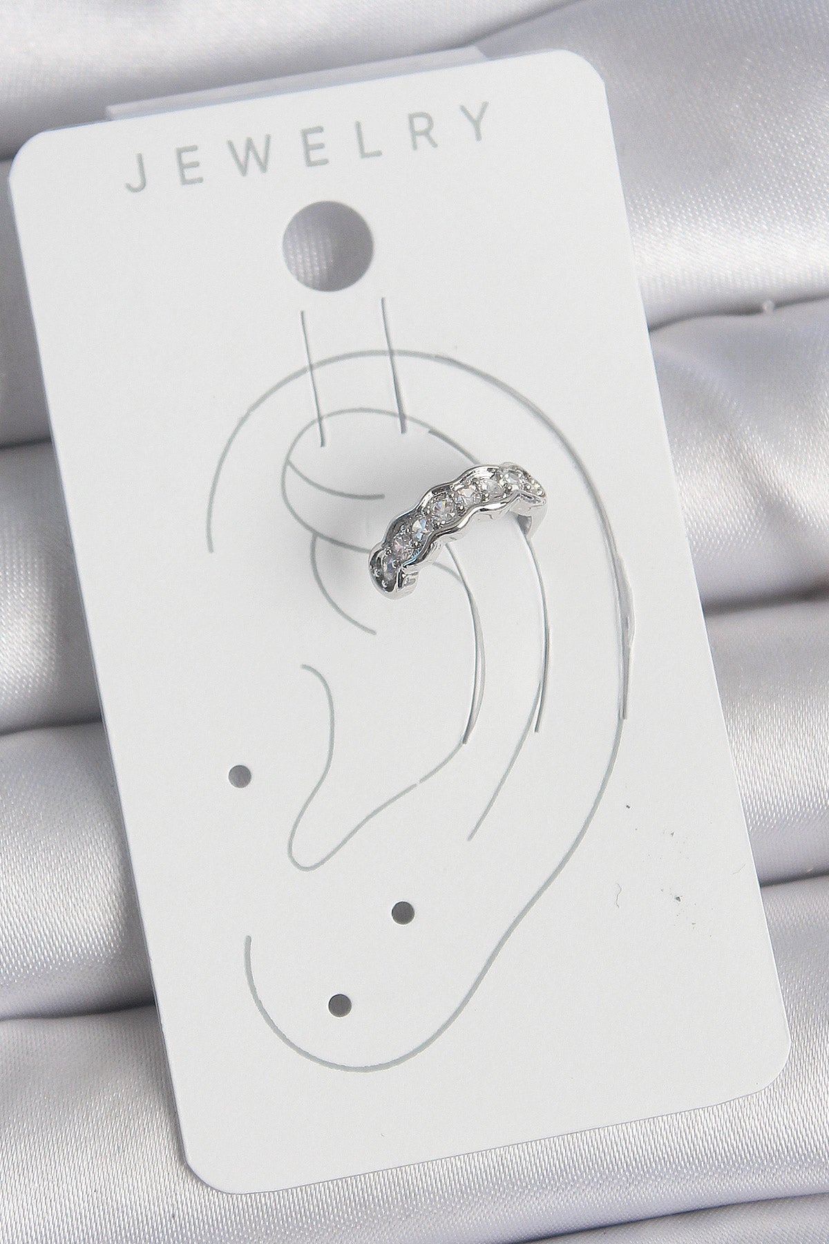 BKP10550 - Pirinç Gümüş Renk Zirkon Taşlı Kıkırdak Model Kadın Küpe