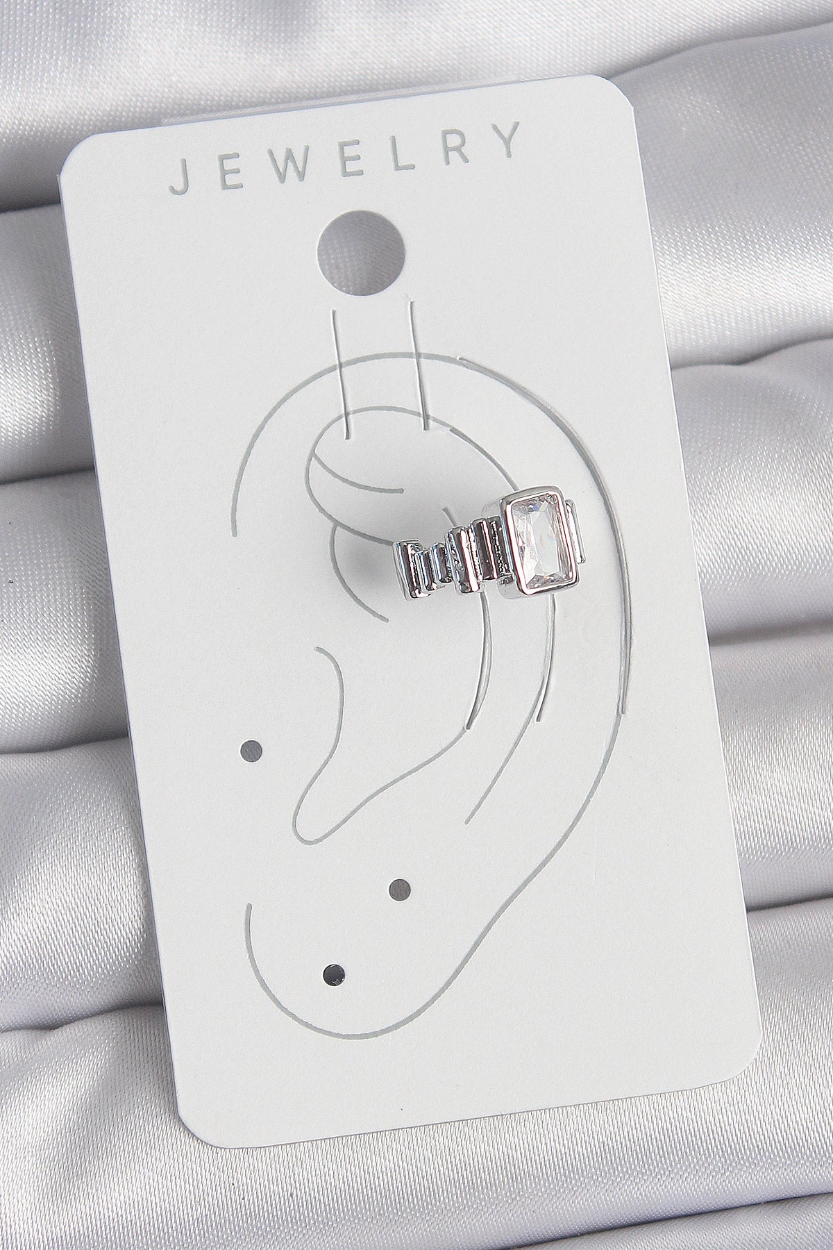 BKP10560 - Pirinç Gümüş Renk Kare Zirkon Taşlı Kadın Kıkırdak Model Küpe