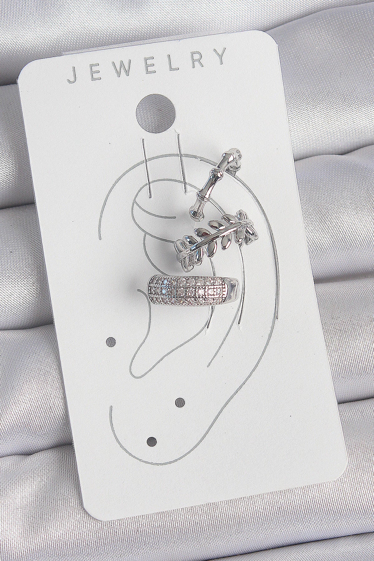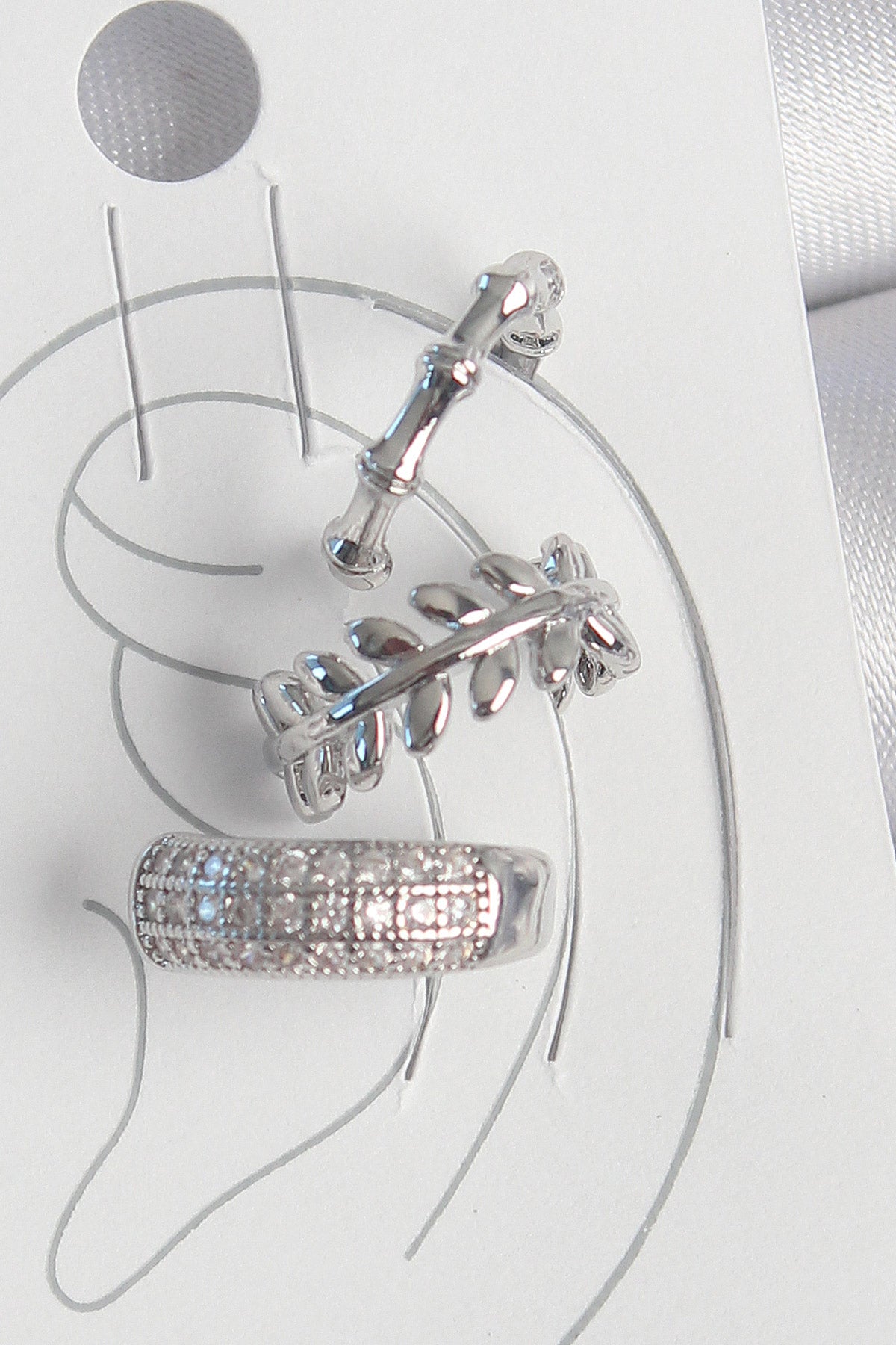 BKP10564 - Pirinç Gümüş Renk Zirkon Taşlı 3'Lü Model Yaprak Figür Kadın Kıkırdak Küpe