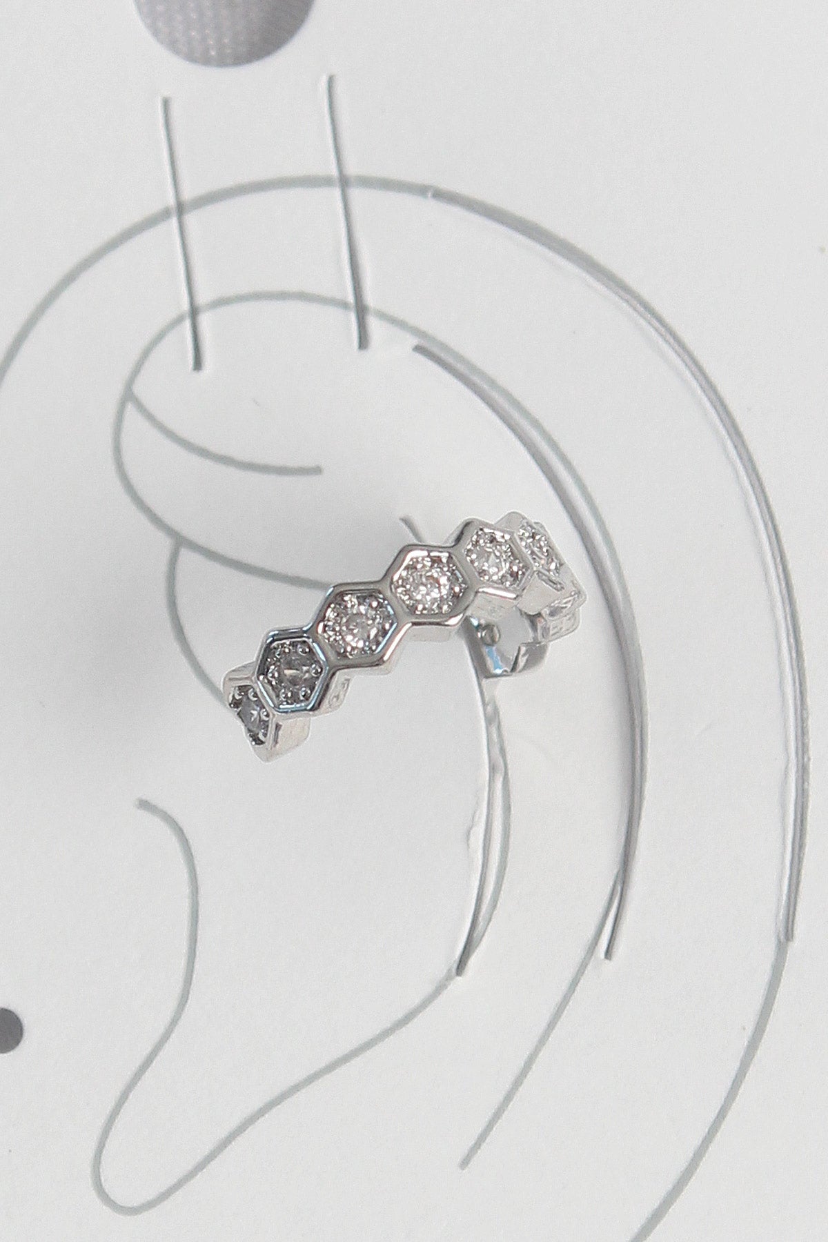 BKP10568 - Pirinç Gümüş Renk Bal Peteği Model Zirkon Taşlı Kadın Kıkırdak Küpe