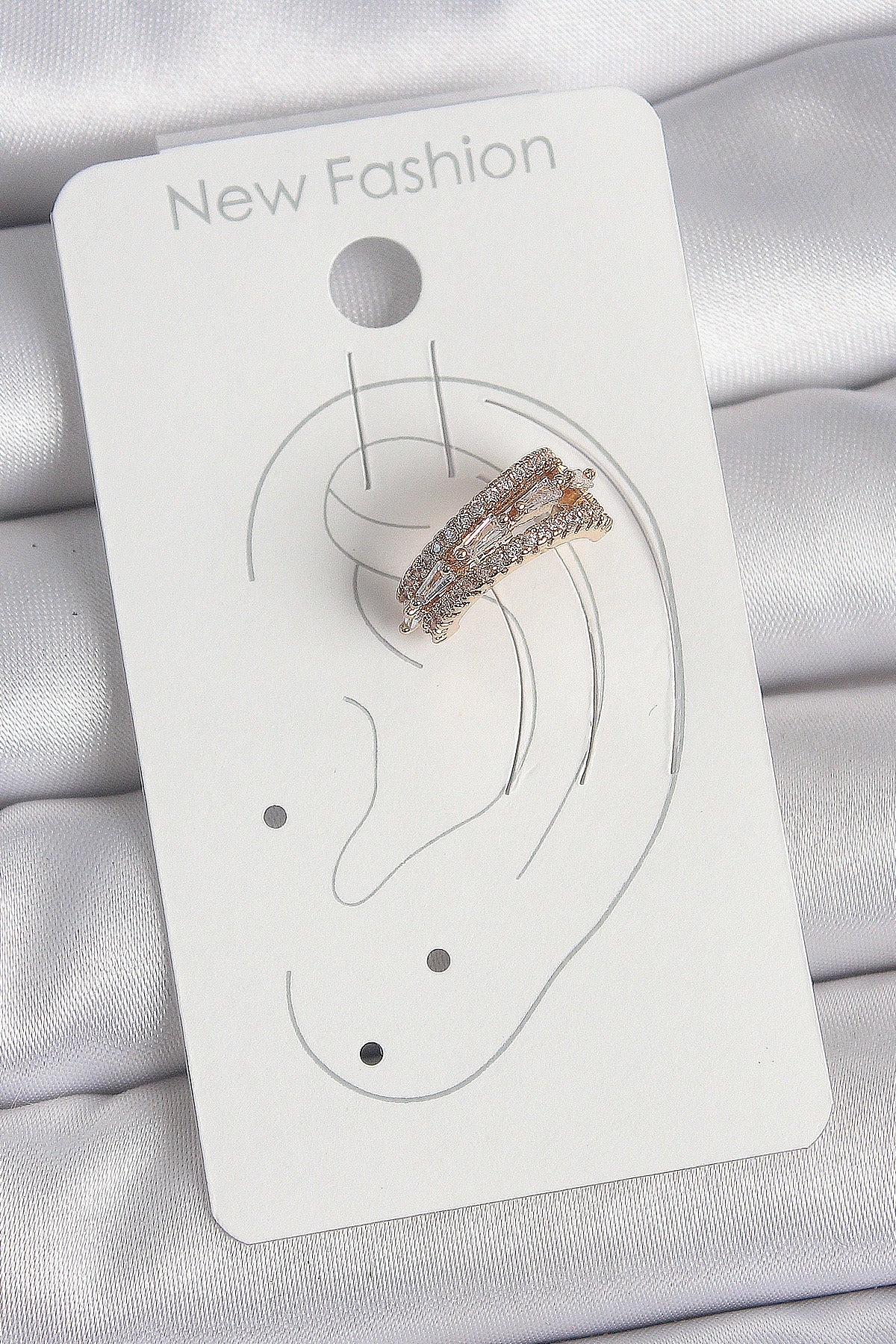 BKP10580 - Pirinç Gold Renk Zirkon Taşlı 3'Lü Sıralı Model Kadın Kıkırdak Küpe