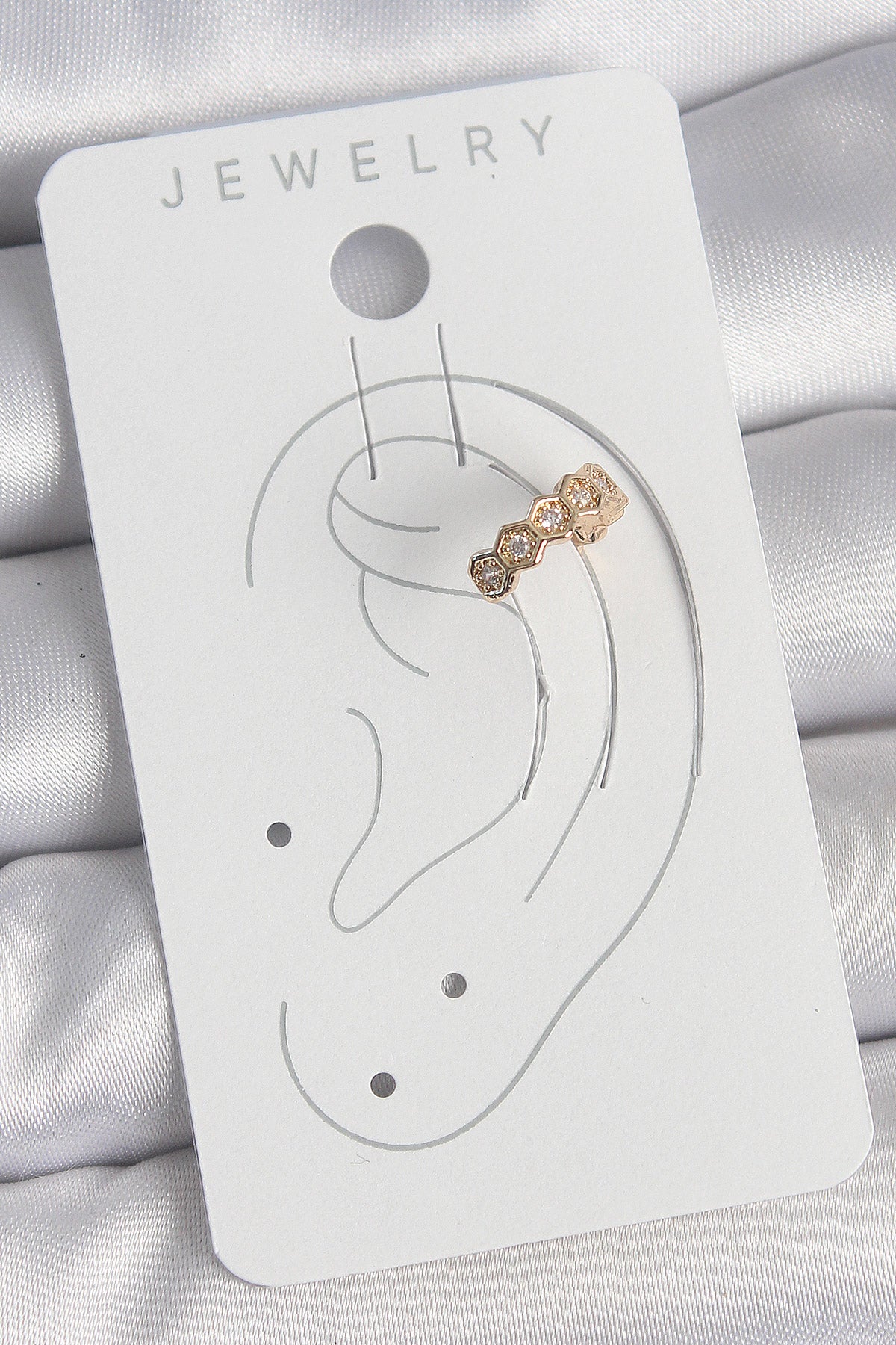 BKP10582 - Pirinç Gold Renk Zirkon Taşlı Bal Peteği Model Kadın Kıkırdak Küpe