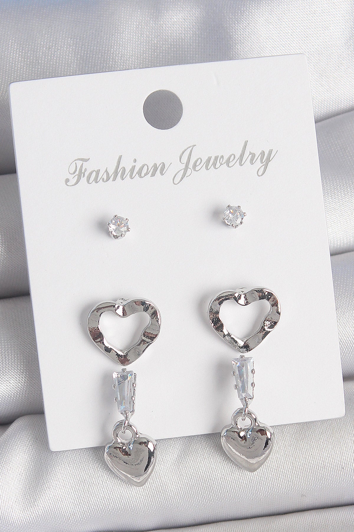 BKP10595 - Pirinç Gümüş Renk Zirkon Taş Detaylı Sallantı Model 2 Çift Kadın Küpe Seti