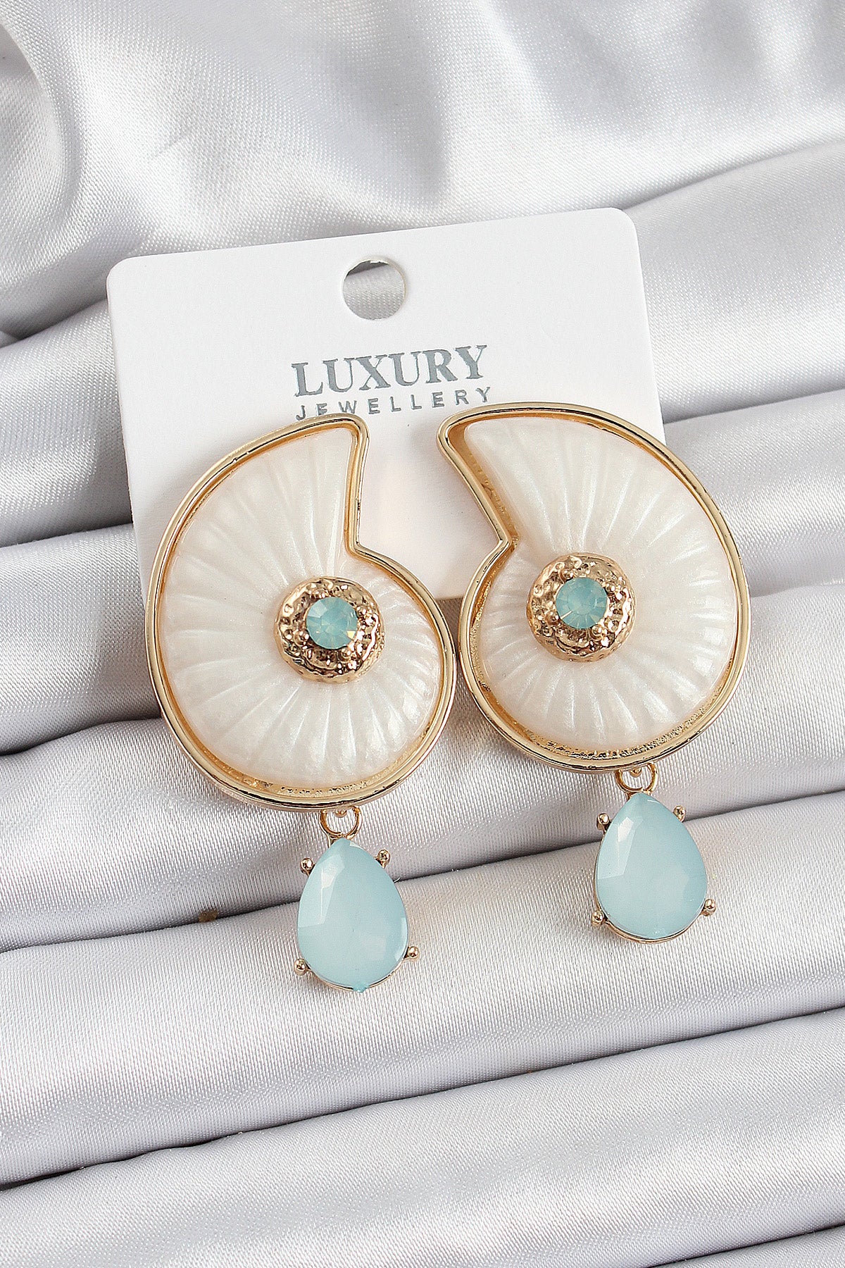 - Ürün Adı: Pirinç Sedef Deniz Kabuğu Figürlü Zirkon Taşlı Gold Renk Kadın Küpe