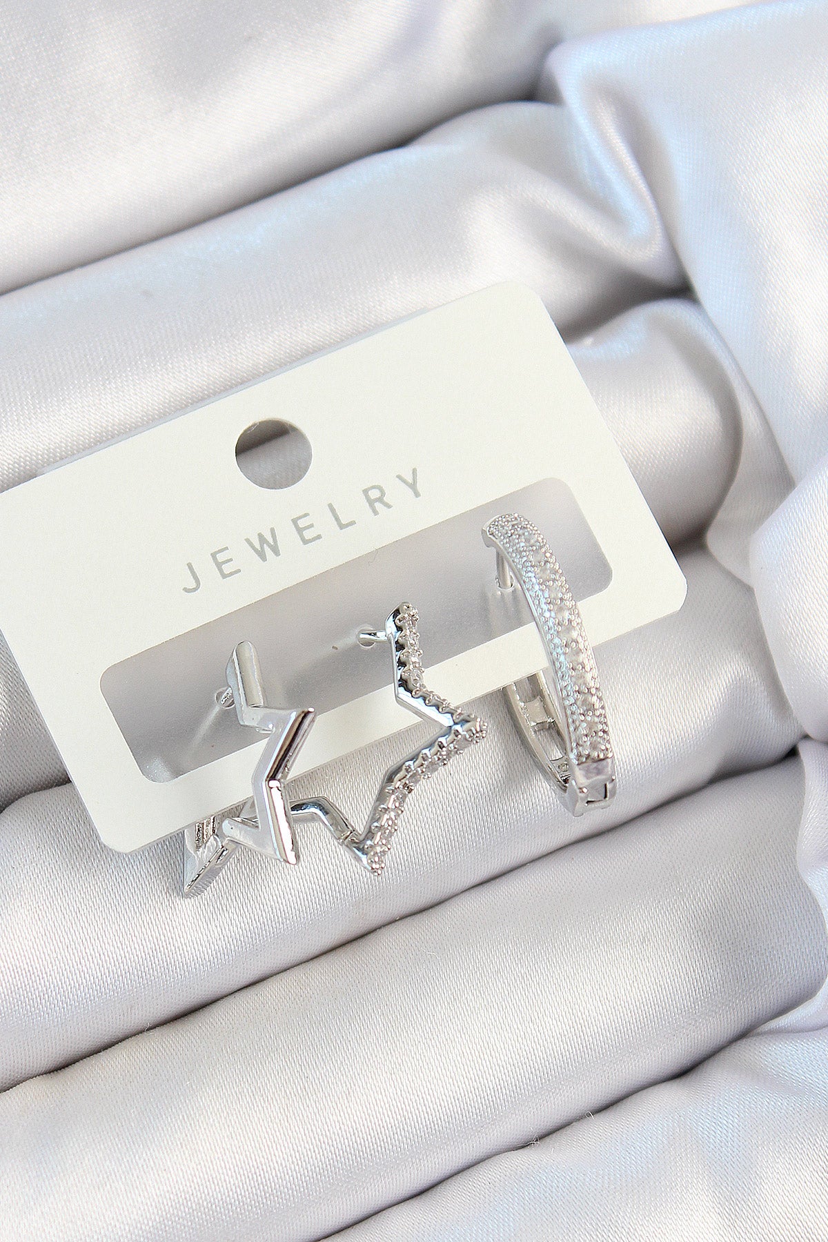 - Ürün Adı: Pirinç Zirkon Taşlı Yıldız Ve Halka Model Gümüş Renk 3'lü Çift Kadın Küpe Set