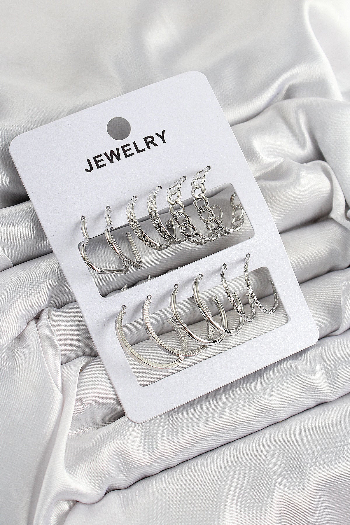 Ürün Adı: | Pirinç Karışık Halka Model Gümüş Renk 6 Çift Kadın Küpe Set |