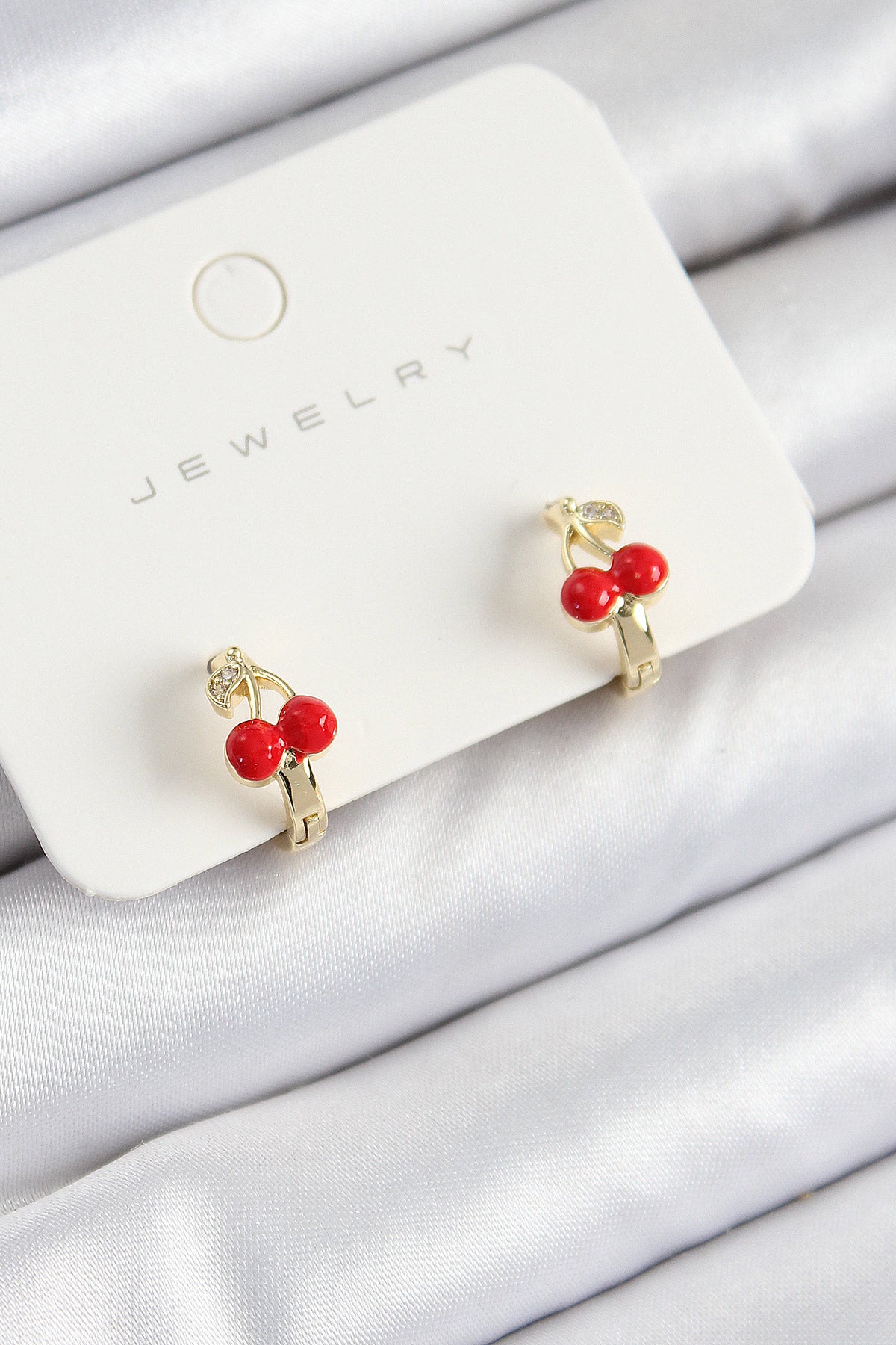 - Ürün Adı: Pirinç Kiraz Model Gold Renk Çocuk Küpe