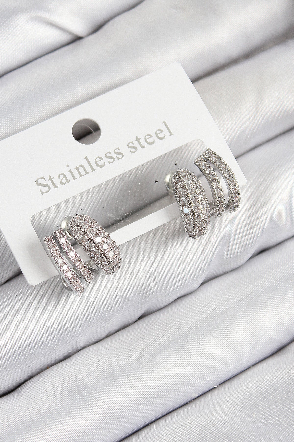 - Ürün Adı: Pirinç Zirkon Taşlı Kıvrımlı Model Gümüş Renk Kadın Küpe