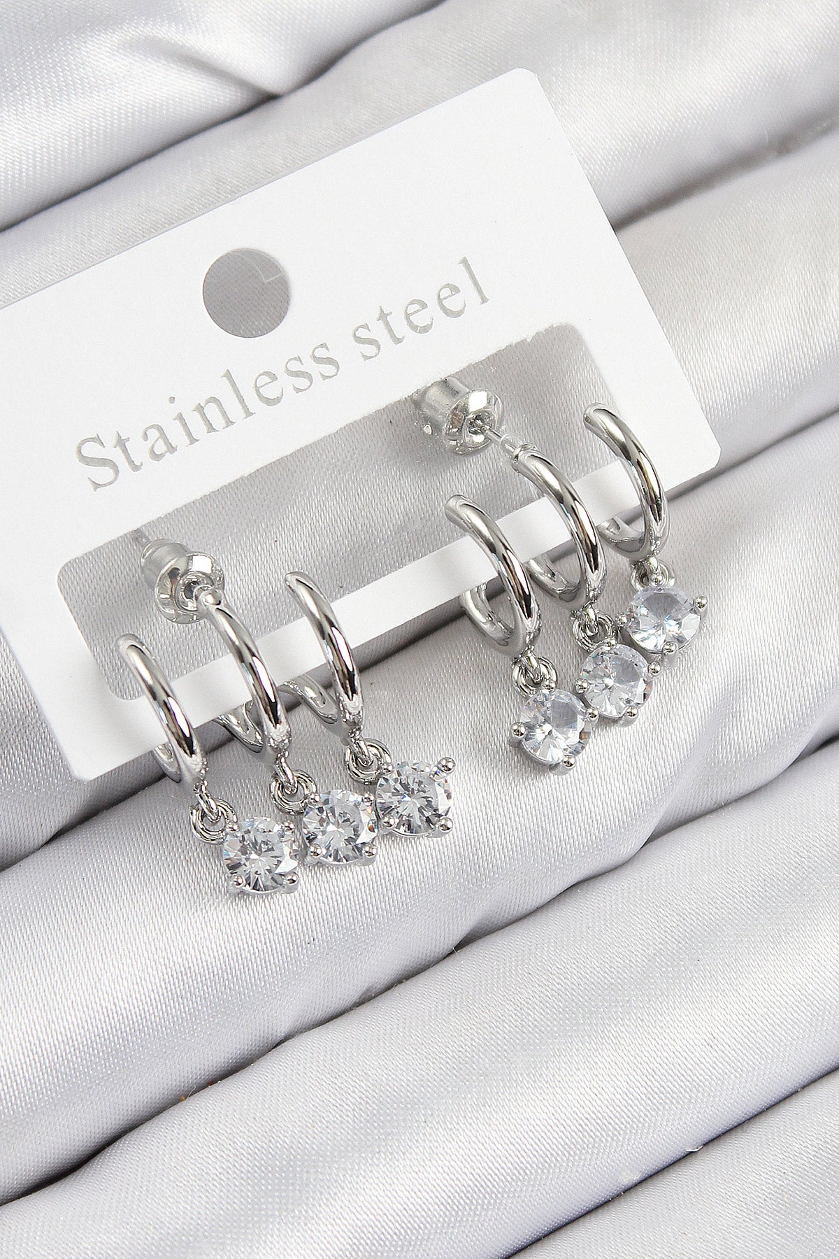 - Ürün Adı: Pirinç Sallantılı Zirkon Taşlı Model Gümüş Renk Kadın Küpe