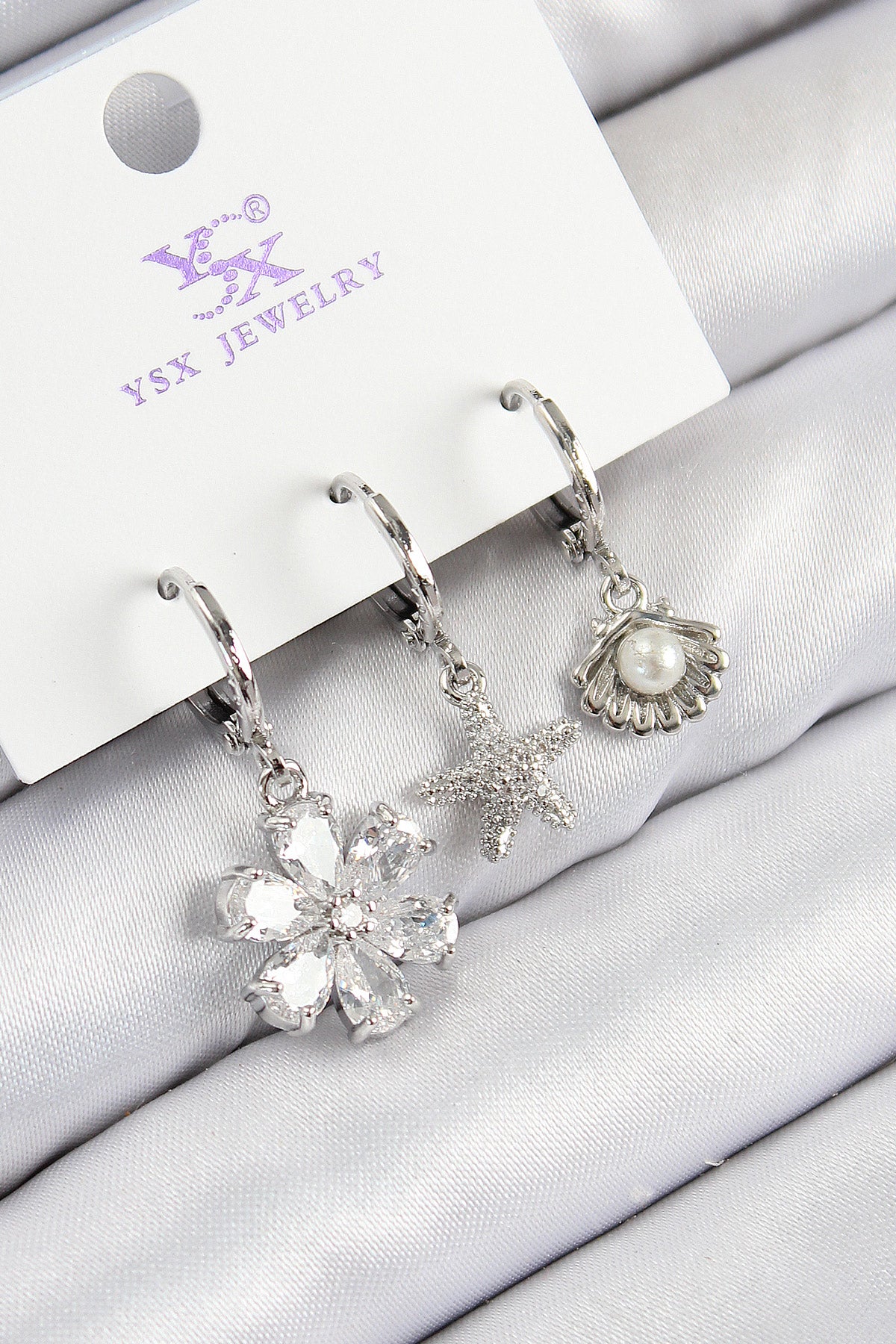 Ürün Adı: | Pirinç Zirkon Taşlı 3'lü Çiçek Ve İstiridye Model Gümüş Renk Kadın Küpe |