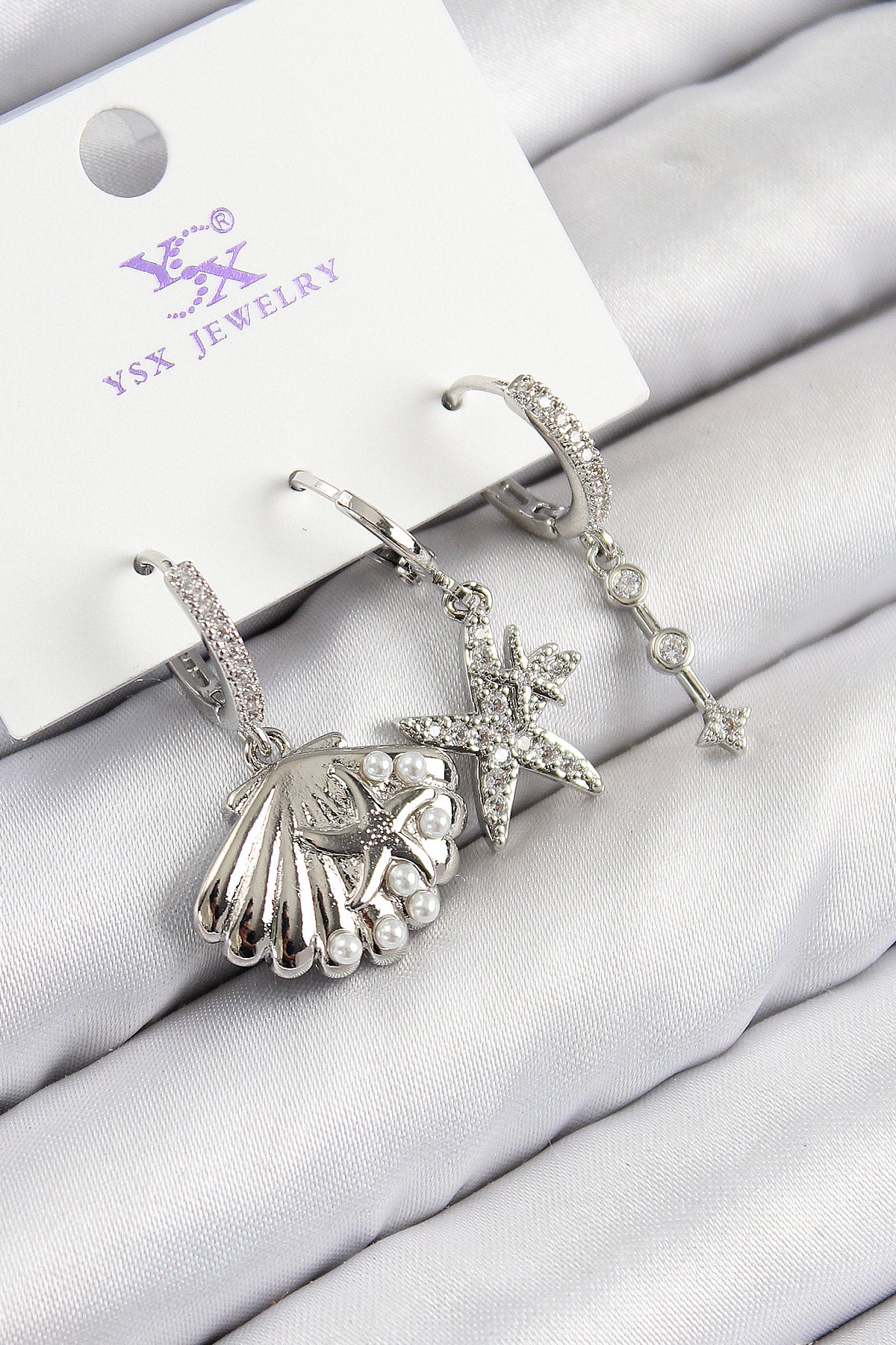 Ürün Adı: | Pirinç Zirkon Taşlı 3'lü Yıldız Ve İstiridye Model Gümüş Renk Kadın Küpe |