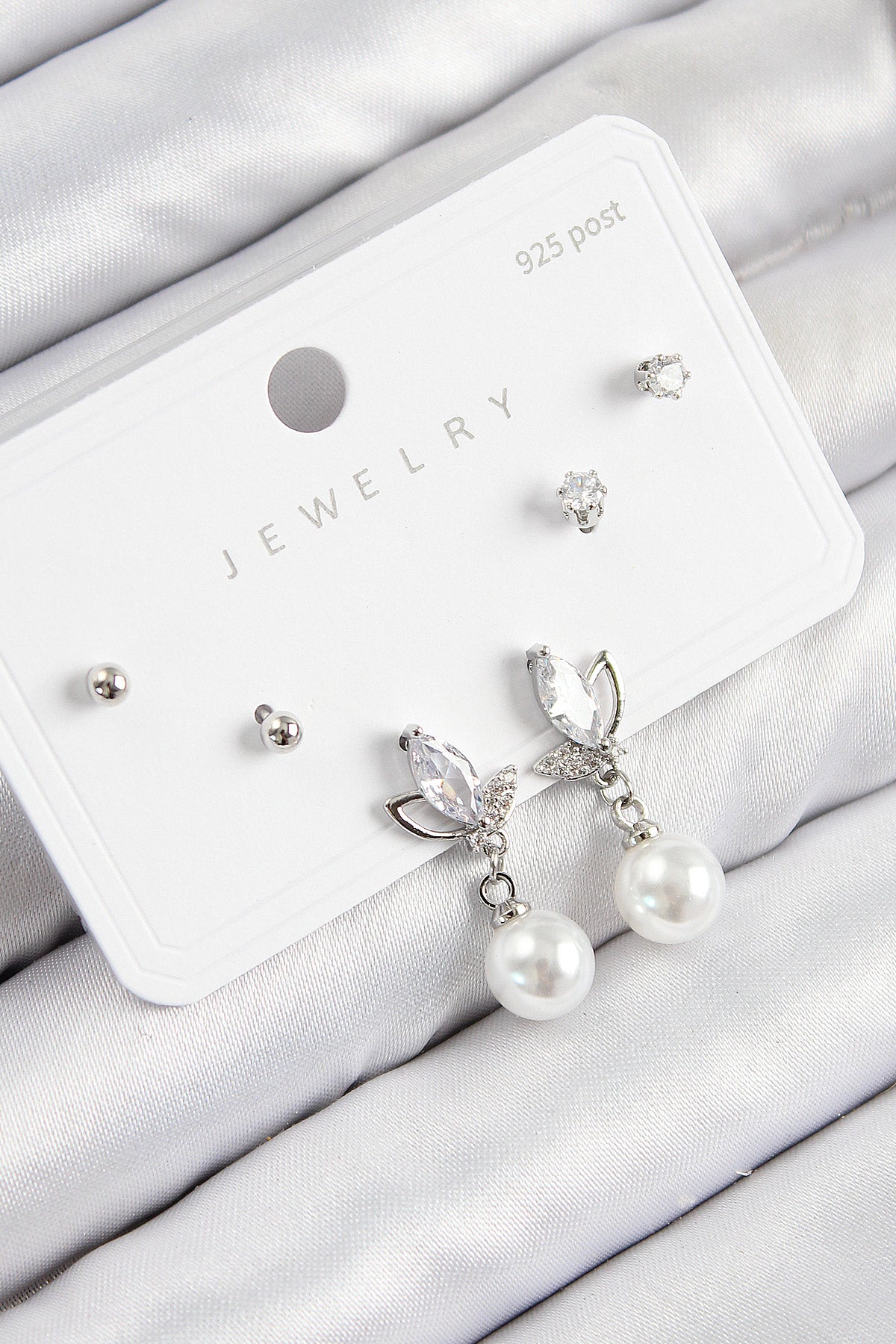- Ürün Adı: Pirinç Zirkon Taşlı İnci Sallantılı Damla Model Gümüş Renk 925 Ayar Gümüş Çivi Kadın Küpe Set