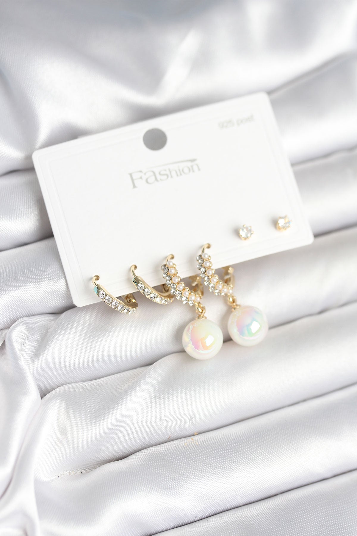 - Ürün Adı: Pirinç Gold Renk İncili 925 Ayar Gümüş Çivi Kadın Küpe Seti