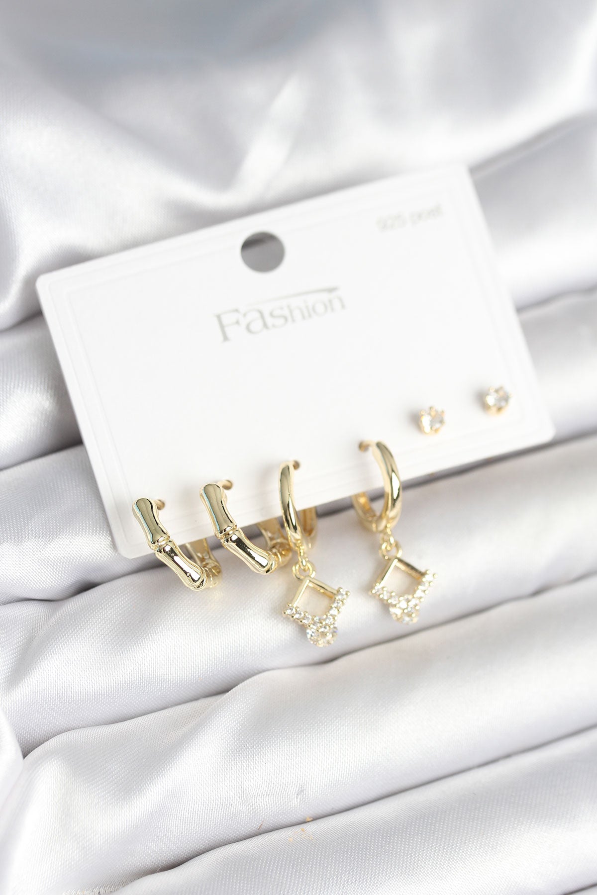 - Ürün Adı: Pirinç Gold Renk 925 Ayar Gümüş Çivili Kadın Küpe Seti