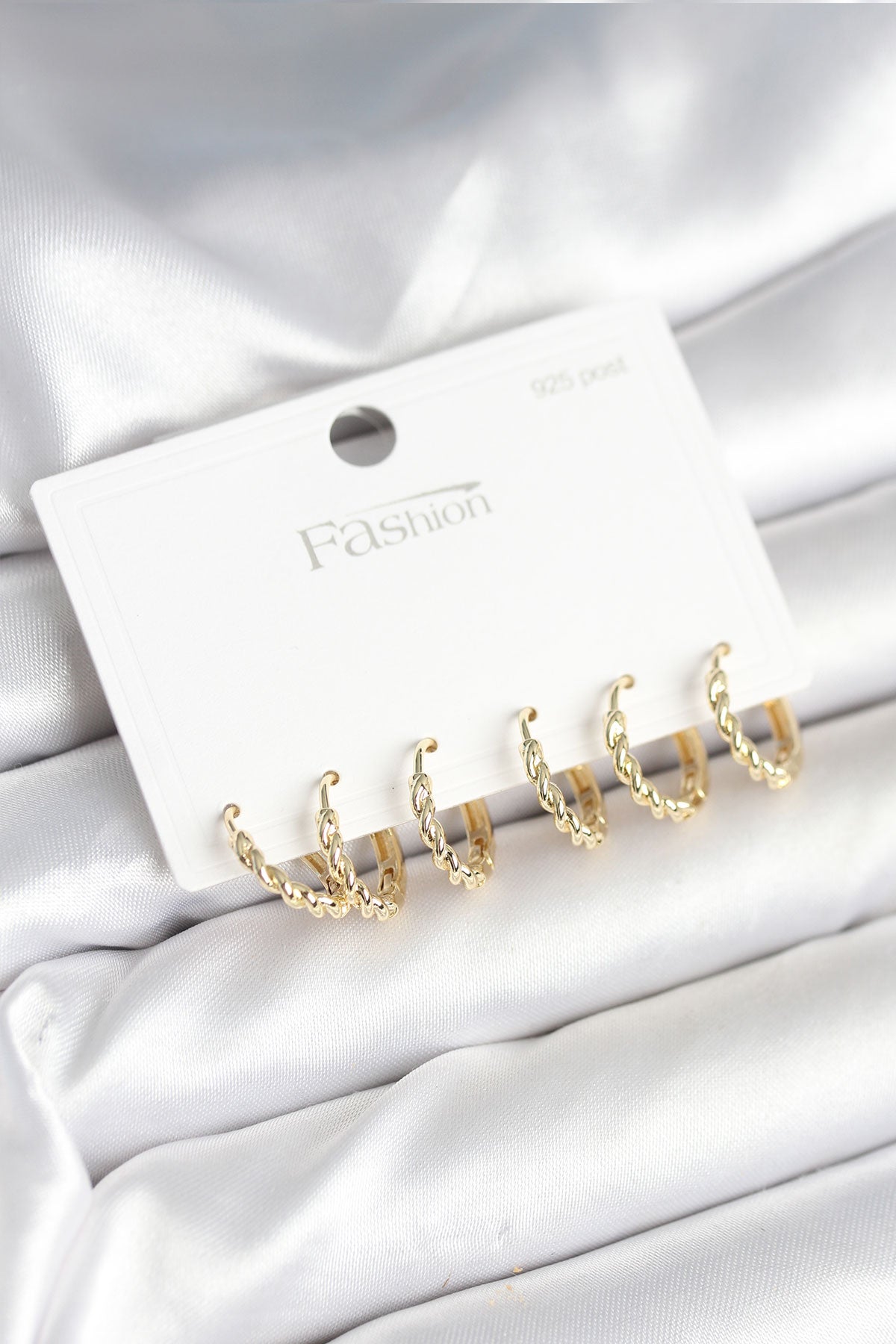 - Ürün Adı: Gold Renk Burgu Halka Model 925 Ayar Gümüş Çivili Pirinç Küpe Seti