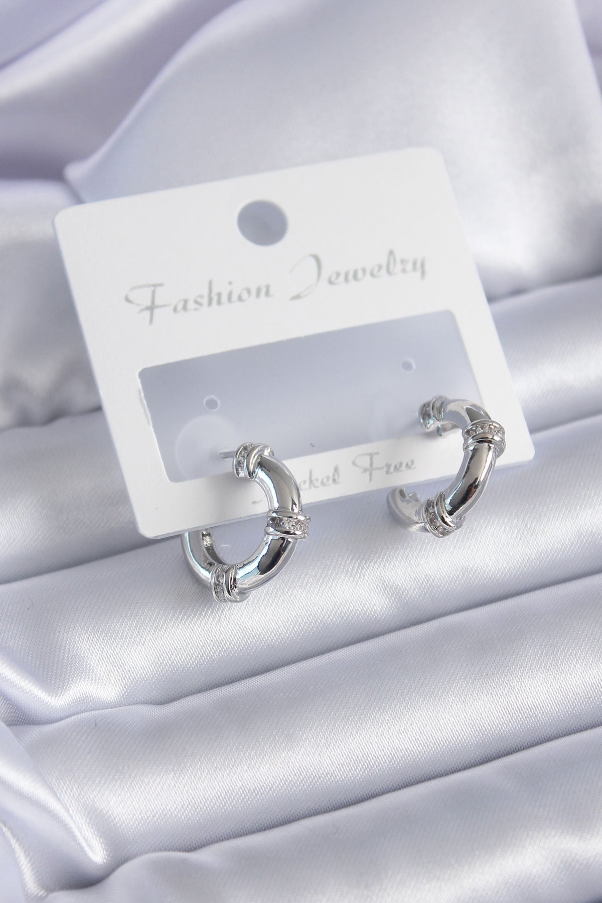 Ürün Adı: | Gümüş Renk Zirkon Taşlı Halka Model Pirinç Kadın Küpe |