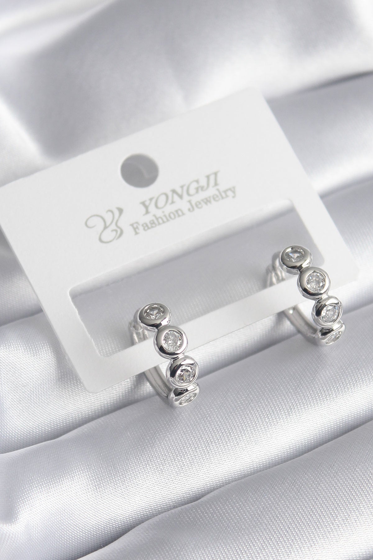 BKP8345 - Pirinç Gümüş Renk Zirkon Taşlı Kadın Küpe
