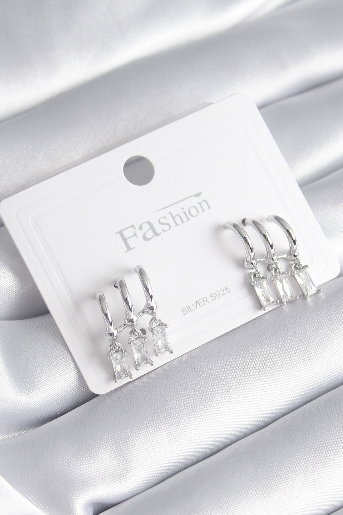 - Ürün Adı: Pirinç Gümüş Renk 3'lü Sallantı Zirkon Taşlı Küpe