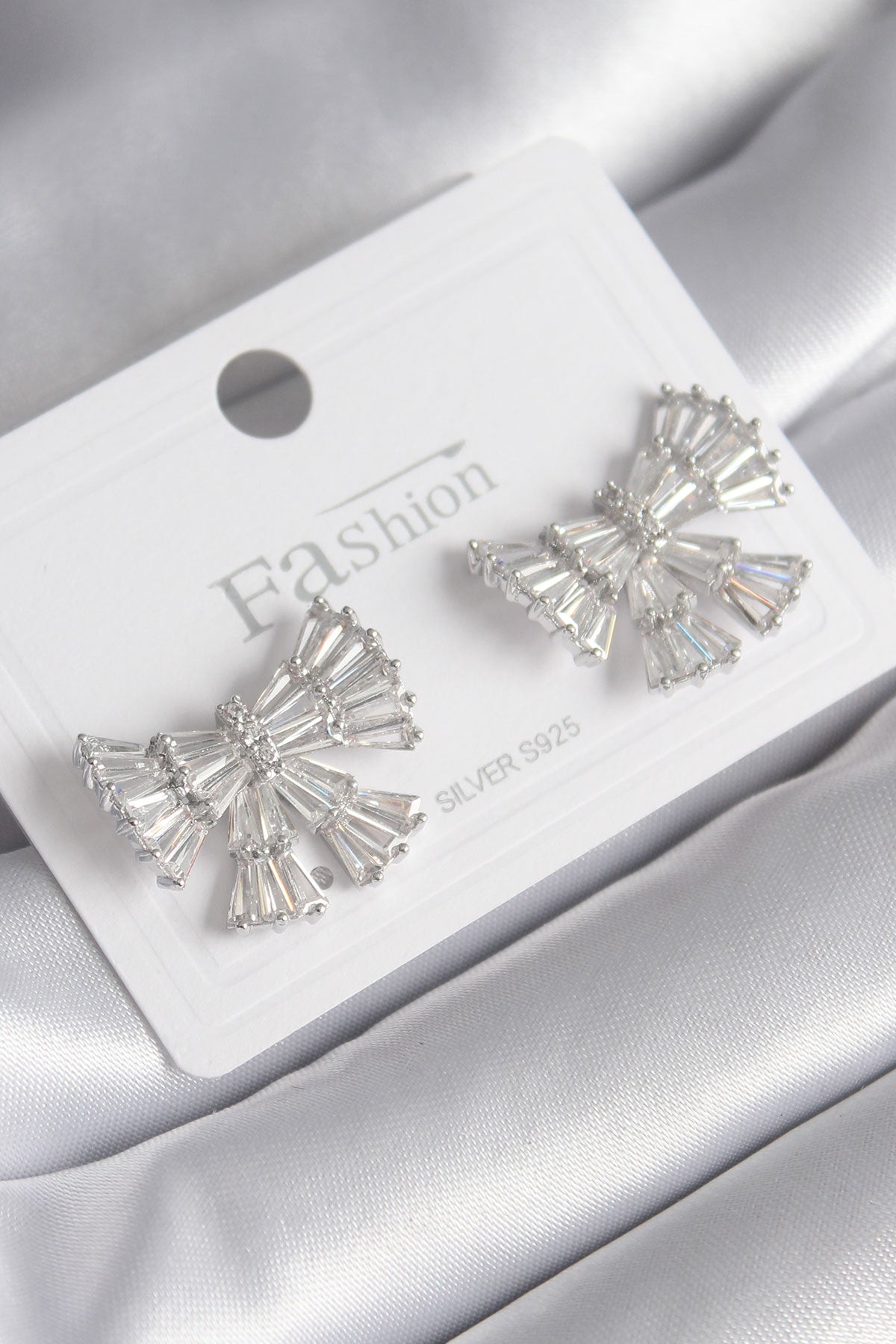 - Ürün Adı: Pirinç Gümüş Renk Zirkon Taşlı Kurdele Model Kadın Küp