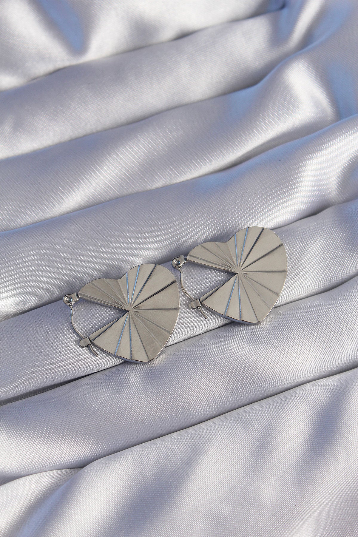 - Ürün Adı: 316L Çelik Gümüş Renk Çizgili Plaka Tasarımlı Kalp Küpe