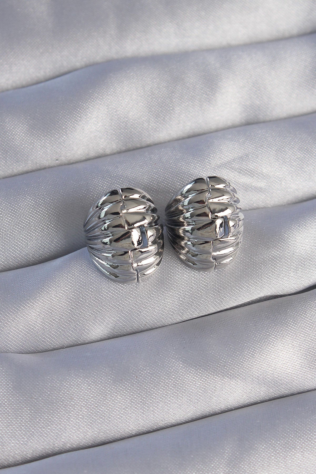 - Ürün Adı: Pirinç Gümüş Renk Tırtıklı Minimal Bombeli Tasarım Küpe