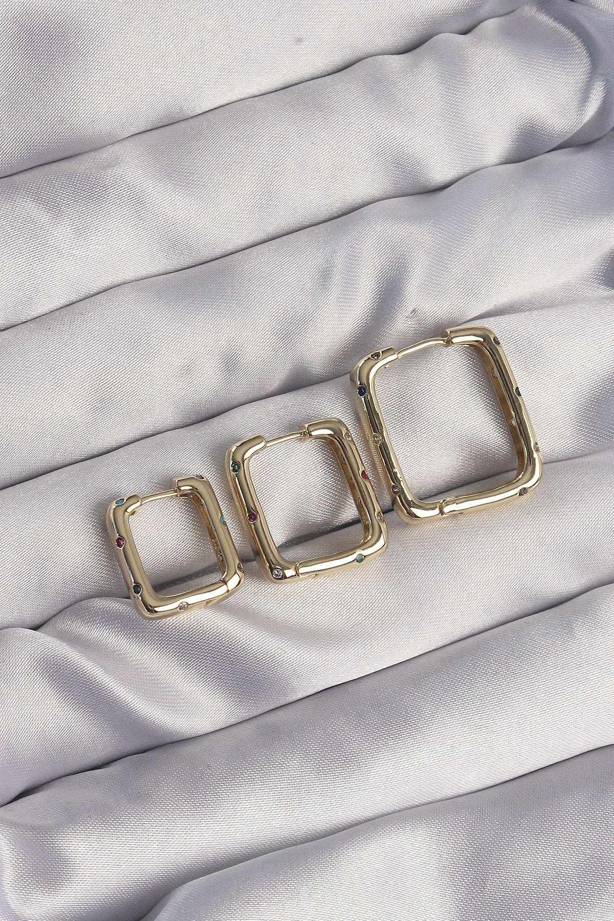 Ürün Adı: | Pirinç Gold Renk Renkli Zirkon Taşlı Kare Model Küpe Seti |