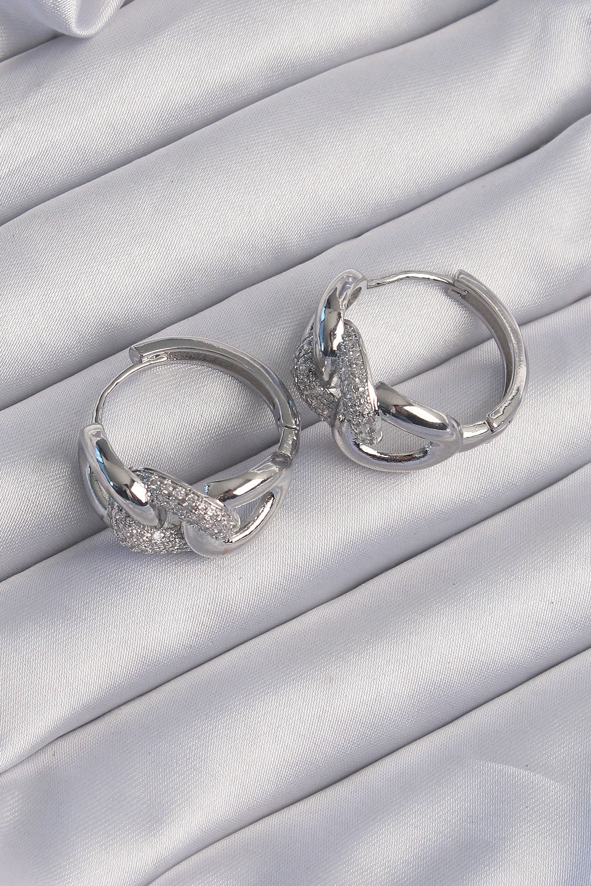 BKP9199 - Pirinç Gümüş Renk Zirkon Taşlı Samanyolu Küpe
