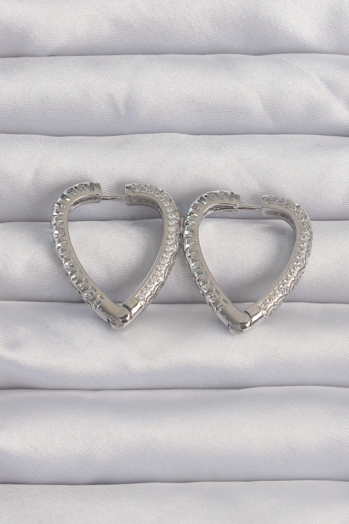 - Ürün Adı: Pirinç Gümüş Renk Zirkon Taşlı Motifli Kalp Küpe