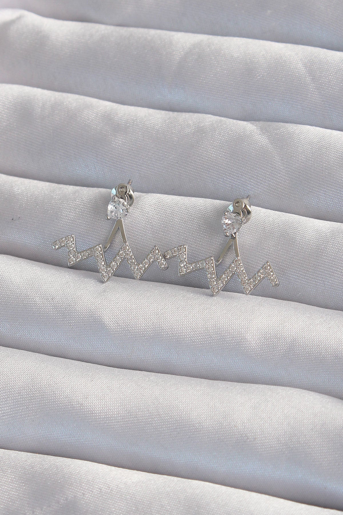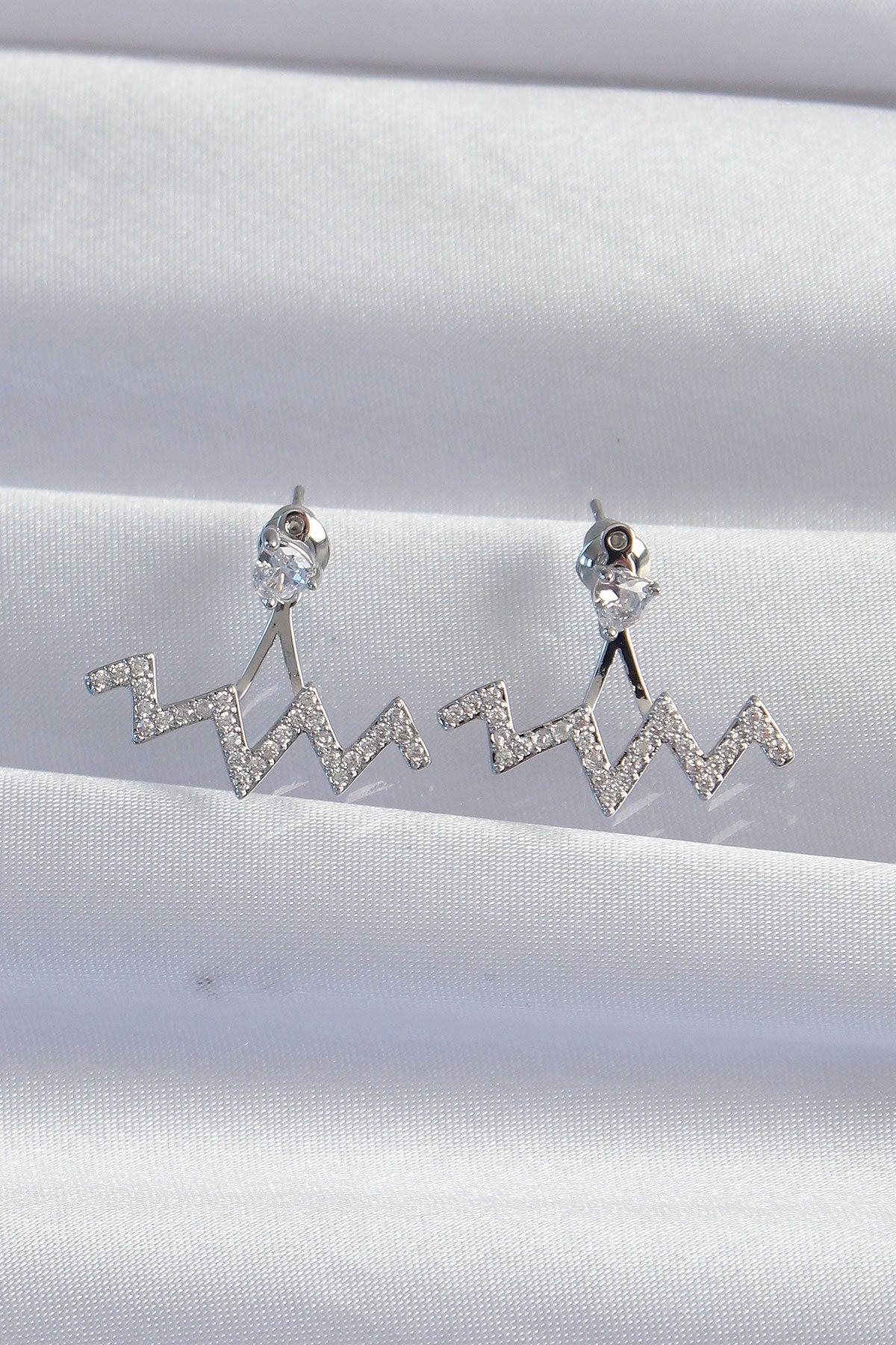 - Ürün Adı: Pirinç Gümüş Renk Zirkon Taşlı Zikzak Küpe