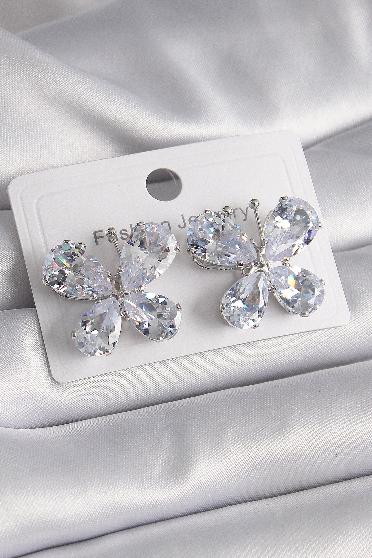 BKP9613 - Pirinç Gümüş Renk Zirkon Taşlı Kelebek Model Kadın Küpe