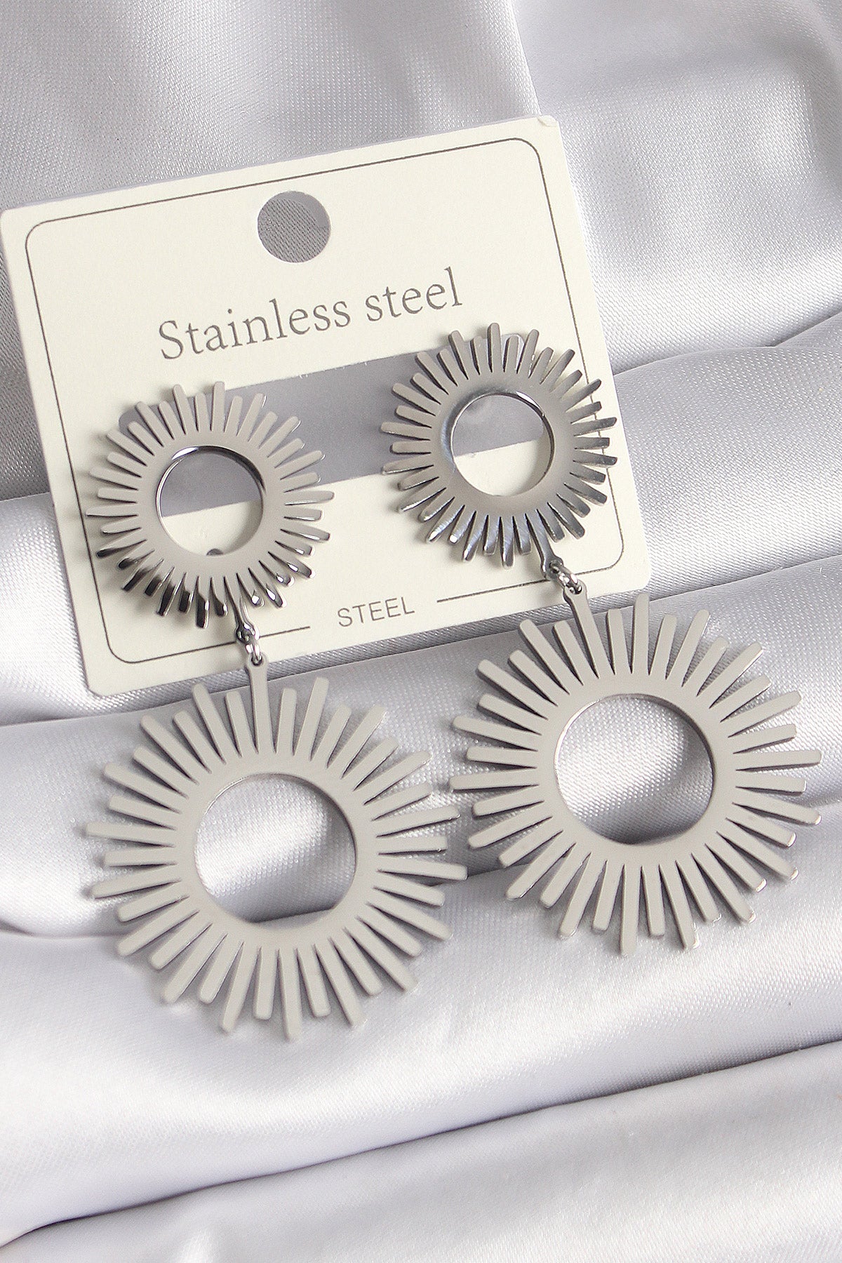 BKP9711 - 316L Çelik Gümüş Renk Sallantı Güneş Model Kadın Küpe