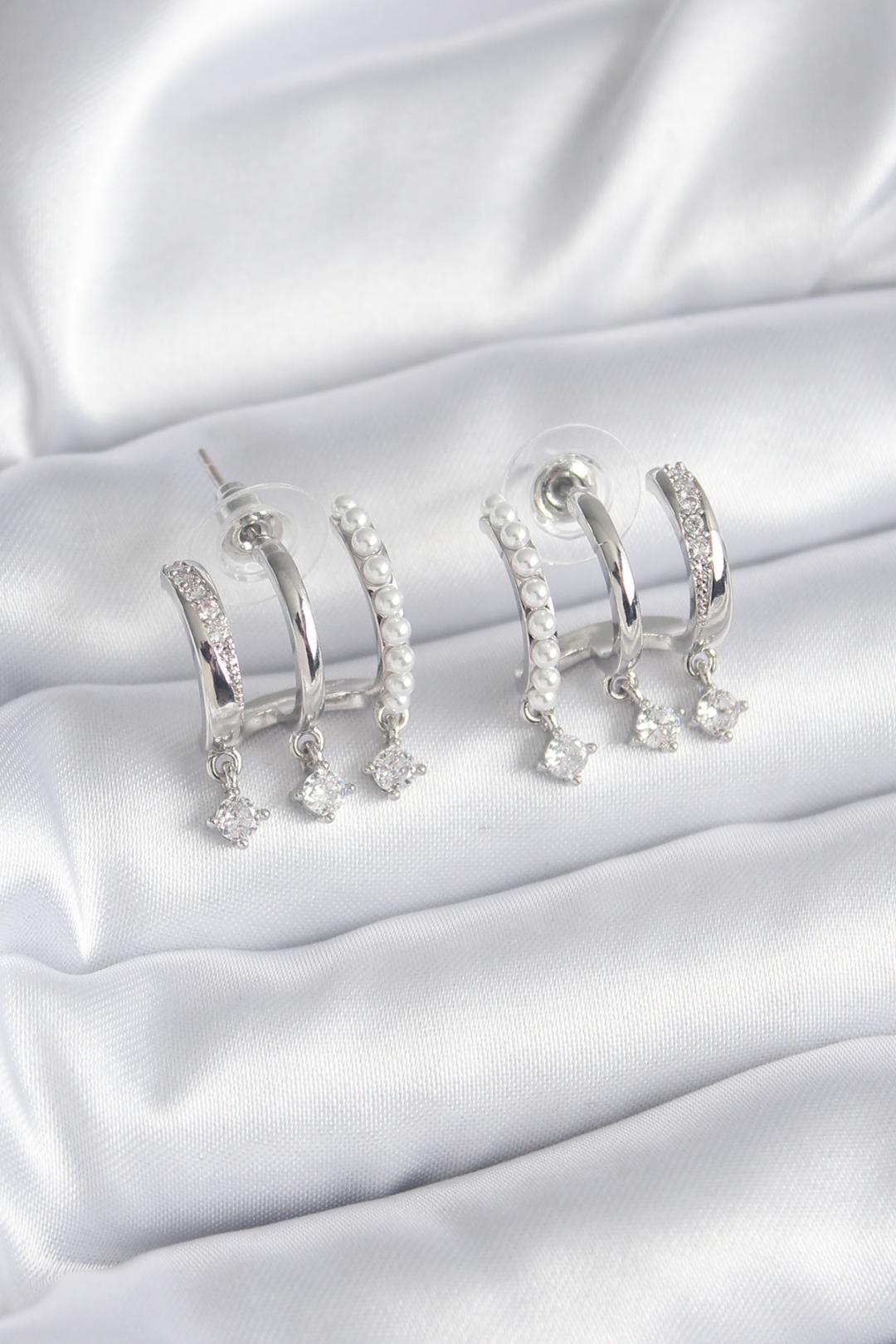 BKP9748 - Pirinç Gümüş Renk Zirkon Taş Detay İncili Kadın Küpe