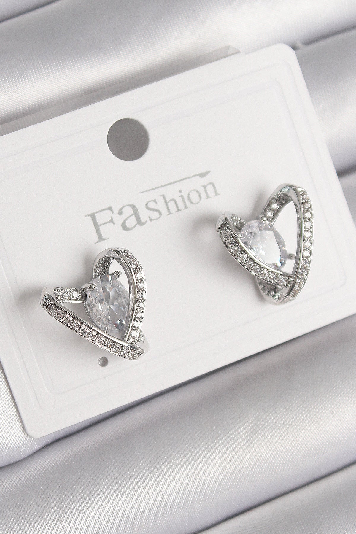 - Ürün Adı: Pirinç Gümüş Renk Zirkon Taşlı Kalp Model Kadın Küpe