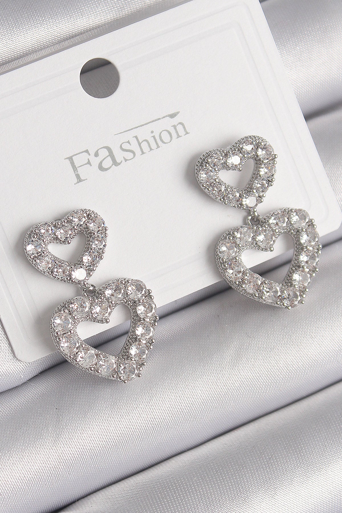 - Ürün Adı: Pirinç Gümüş Renk Zirkon Taşlı Sallantı Kalp Model Kadın Küpe