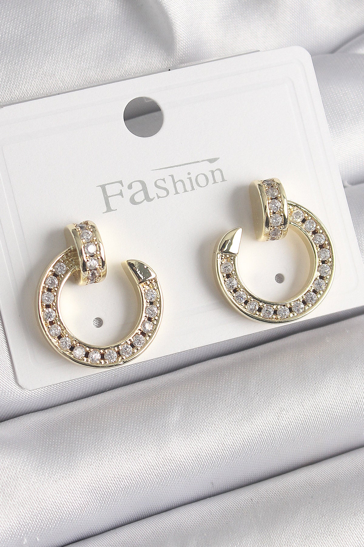 BKP9846 - Pirinç Gold Renk Zirkon Taşlı Çivi Halka Model Kadın Küpe