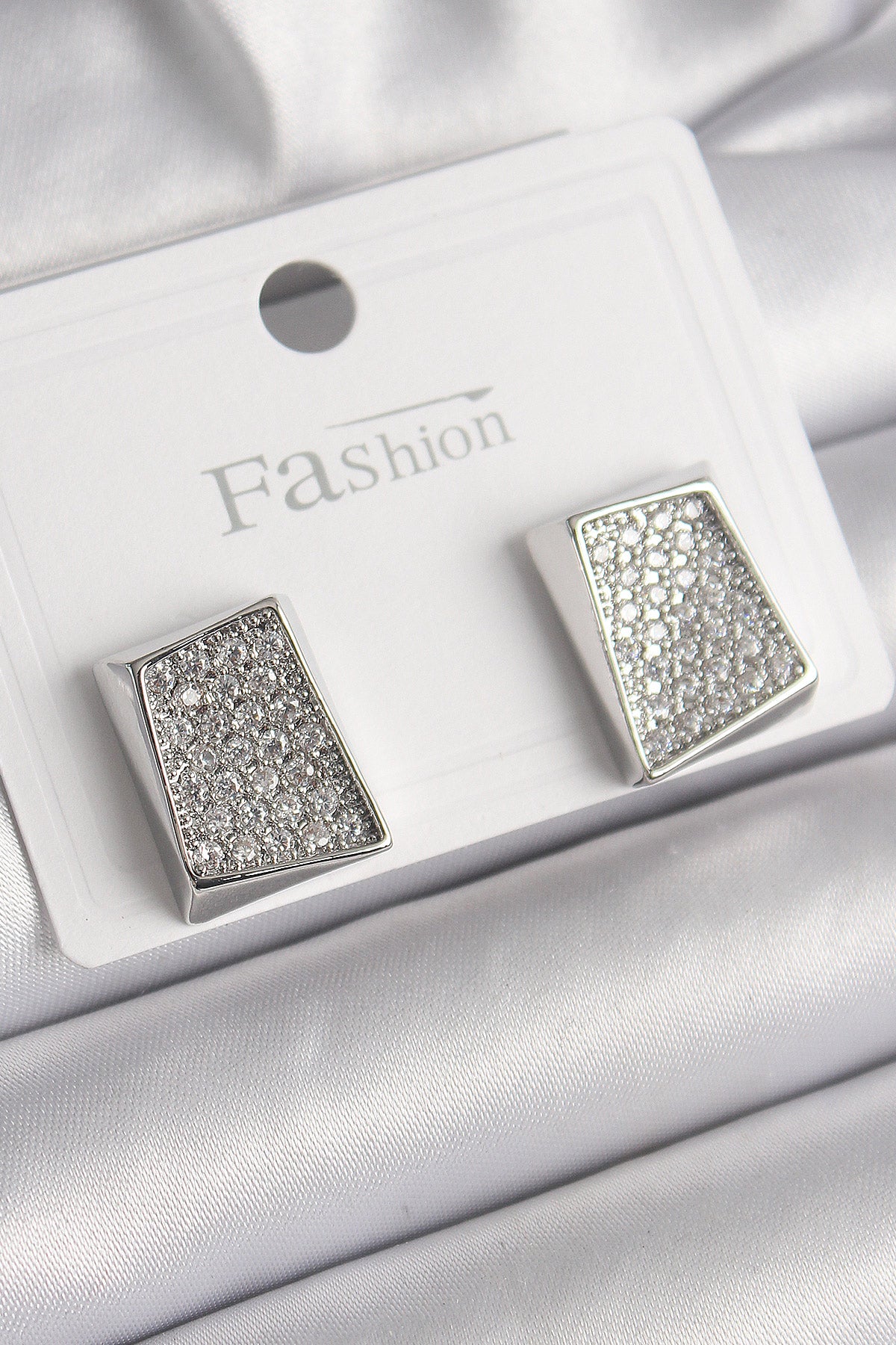 BKP9849 - Pirinç Gümüş Renk Zirkon Taşlı Plaka Model Kadın Küpe