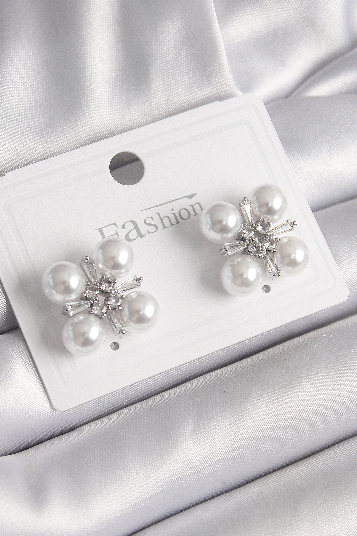 - Ürün Adı: Pirinç Gümüş Renk Zirkon Taşlı İncili Kadın Küpe